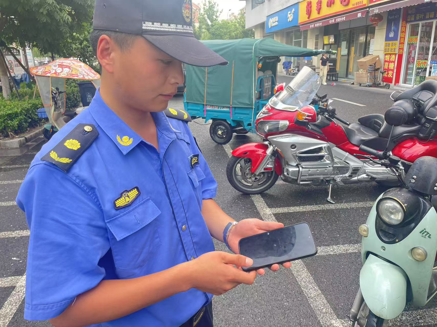 7月28日8:20,浙江民泰公司駐杭州市臨平區塘棲市容項目員工李冠峰在運河街道范家斗農貿市場(chǎng)巡查時(shí),撿到一部華為手機。報告項目負責人后,李冠峰便在原地邊巡查邊等待失主。