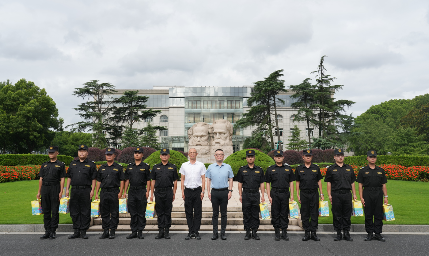 7月29日,上海市委黨校副校長(cháng)戴冰一行,頂著(zhù)炎炎烈日,看望慰問(wèn)高溫下堅守崗位的宗保公司員工,為他們送上防暑降溫用品,表達市委黨校對安保人員的關(guān)心和問(wèn)候,感謝大家為維護黨校秩序所付出的辛勤勞動(dòng),叮囑大家安排好休息,照顧好身體。