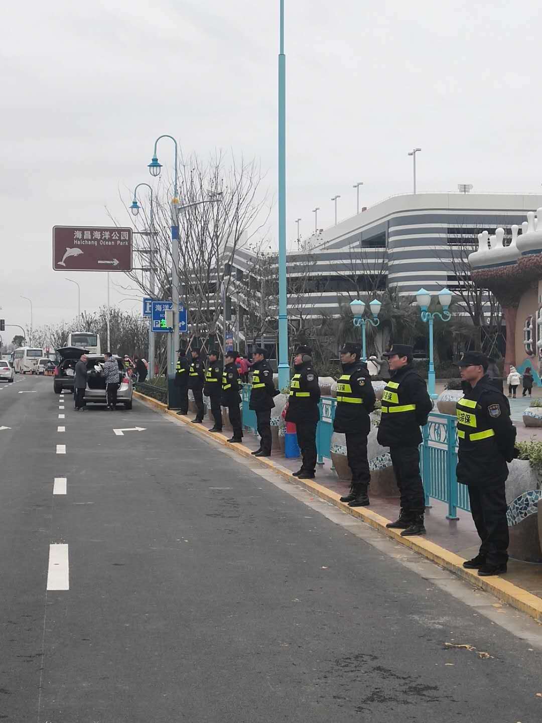 春節期間除了走親訪(fǎng)友,現在越來(lái)越多的人喜歡旅游。去年十月剛剛開(kāi)園的上海海昌海洋公園,這個(gè)春節是很多游客的首選旅游地。為了應對春節期間大客流,確保廣大群眾過(guò)一個(gè)安定祥和的春節,宗保公司除了需承擔海昌公園內外人流疏導,還需道路指引、秩序維持、機動(dòng)巡邏等任務(wù)。