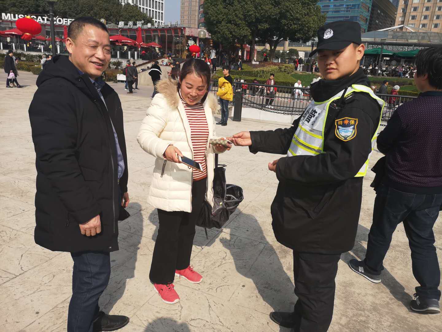 2月6日,宗保特保隊員王曉盼與張雅坤在濱江公園花園石橋路段巡邏時(shí)碰到游客求助,說(shuō)他在自動(dòng)售賣(mài)機處撿到一部VIVO手機,需要交于我們處理,幫忙找到失主。接到這一情況后,兩名隊員及時(shí)匯報,根據現場(chǎng)值班隊長(cháng)指令,通過(guò)手機來(lái)電主動(dòng)聯(lián)系失主,約定招領(lǐng)地點(diǎn),與失主見(jiàn)面后核實(shí)其信息無(wú)誤后將手機交還失主。