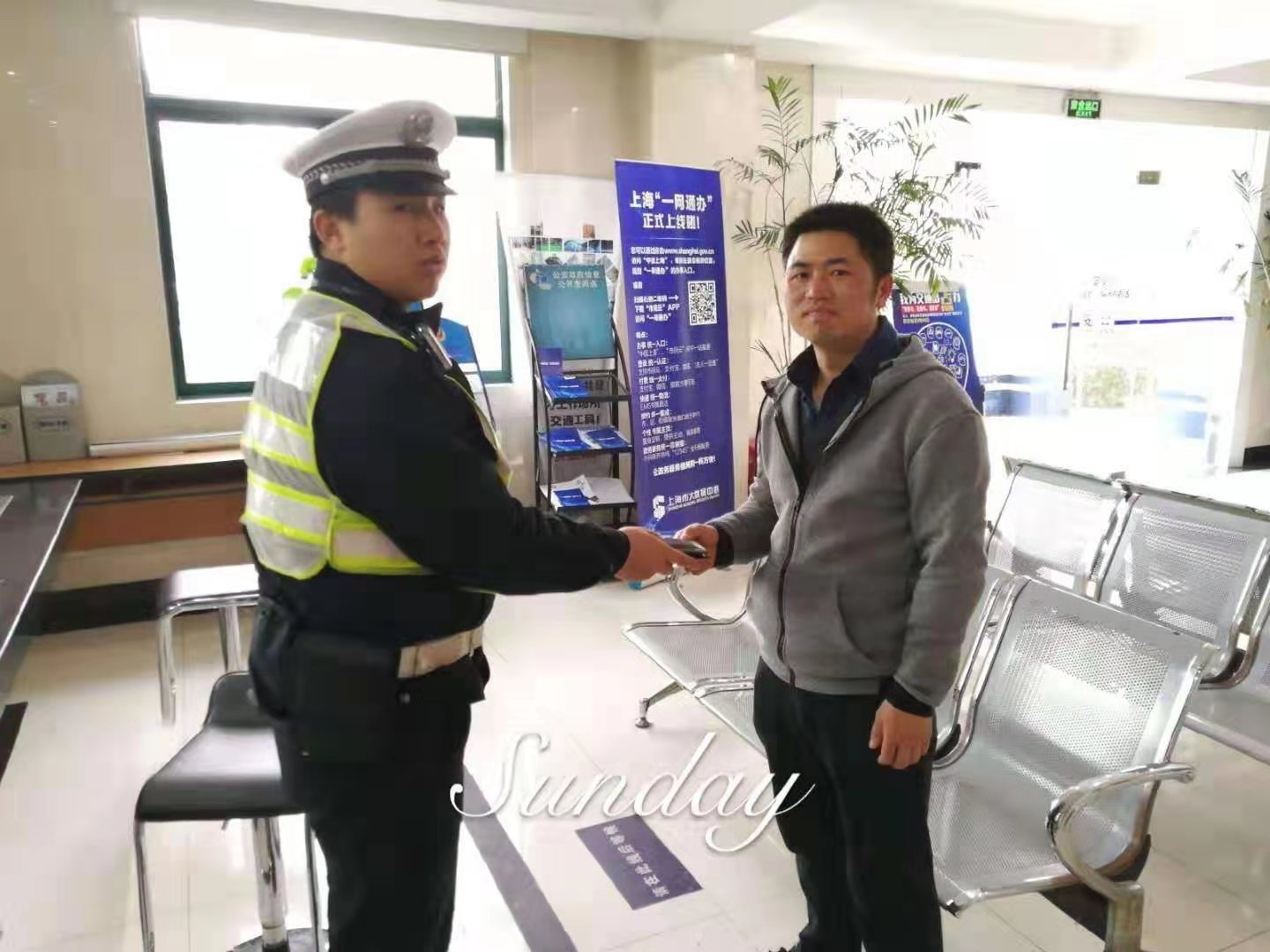 2019年2月24日,一位男士握著(zhù)宗保公司駐金橋輔警項目隊員劉玉坤的手,再三感謝——感謝歸還他丟失的錢(qián)包。