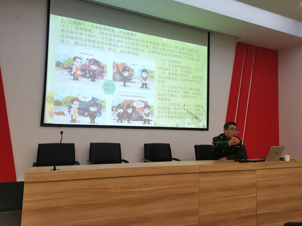 本次培訓,很榮幸地邀請到杭州市余杭區星橋城管劉隊長(cháng)擔任講師,對浙江民泰公司參與城市管理工作部分骨干、預提骨干及其他隊員進(jìn)行了全面的業(yè)務(wù)知識和法律法規培訓。