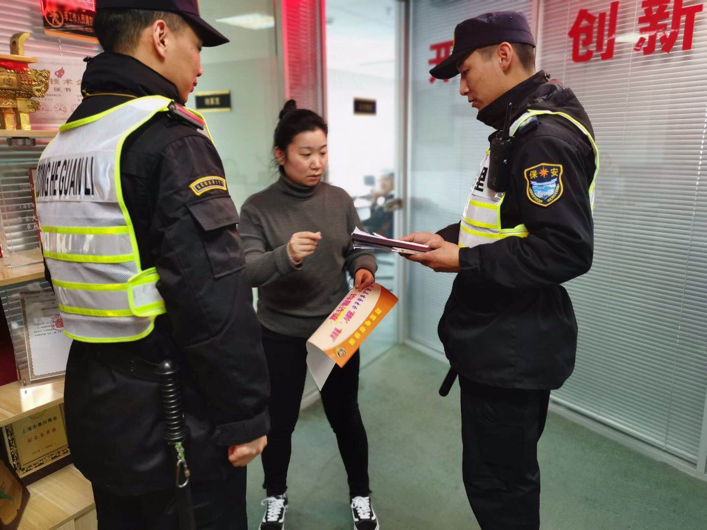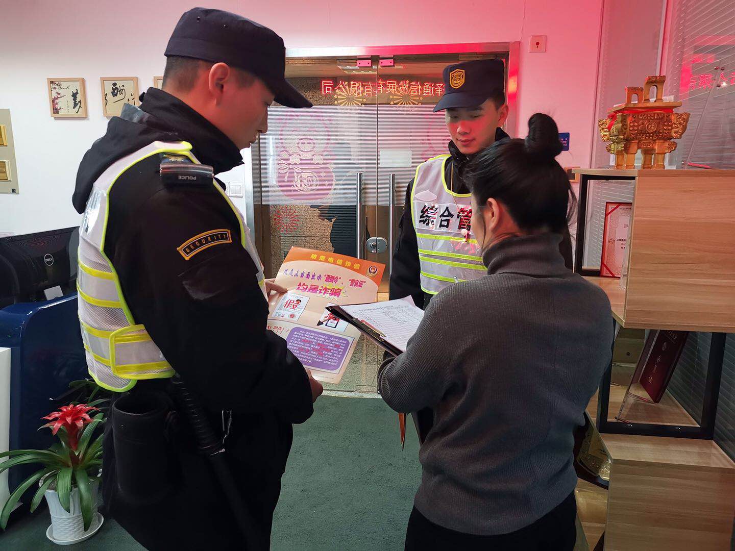 按照甲方領(lǐng)導安排,宗保公司駐陸家嘴項目配合派出所對管轄區域開(kāi)展宣傳。特保隊員跑樓宇、進(jìn)商圈,對商業(yè)城區域數十棟大樓、數百家商家進(jìn)行了逐戶(hù)宣傳宣講。特保隊員通過(guò)派發(fā)宣傳資料、現場(chǎng)講解的方式,向各商戶(hù)講述了電信詐騙的種類(lèi)、慣用手段及防范常識,以及“電信詐騙識騙防騙技巧”、“電信詐騙常用語(yǔ)”、“電信詐騙常用行為”,提醒廣大市民不要輕易將個(gè)人資料、卡號、存款、密碼等信息告知他人。如遇可疑情況,要多和家人溝通商議或及時(shí)報警,以免遭到不法侵害。