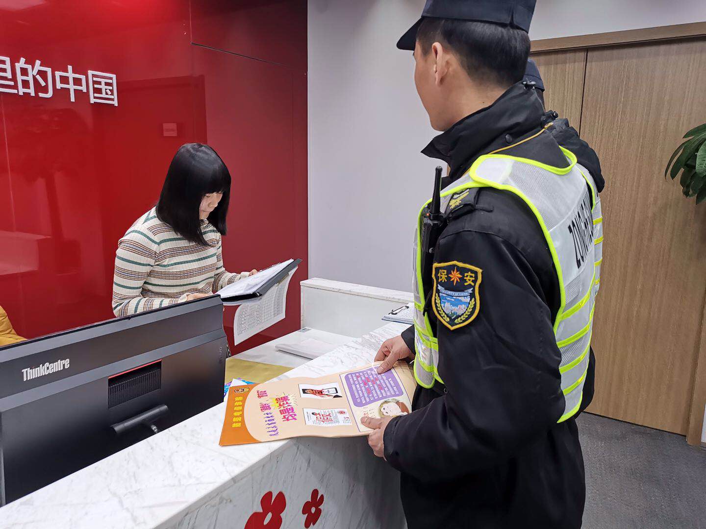 2019年3月22日,宗保駐陸家嘴項目余澤權走進(jìn)新大陸廣場(chǎng)某商鋪派發(fā)防范電信詐騙宣傳資料,受到商戶(hù)贊揚。