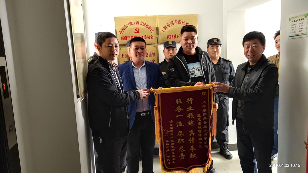2019年4月2日,上?;菽湘偹亩沾逯鞎?shū)記、姚主任將一面繡有“行業(yè)領(lǐng)跑,真情奉獻,服務(wù)一流,盡職盡責”的錦旗送到宗?;菽蠀^域經(jīng)理王鳳樓、市容隊長(cháng)王華奇的手中,對宗保駐惠南輔助隊伍在“美麗庭院”專(zhuān)項整治過(guò)程中的工作,給予了充分的肯定。