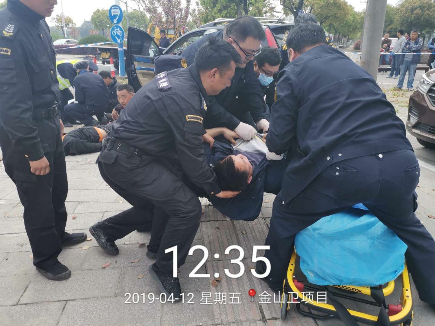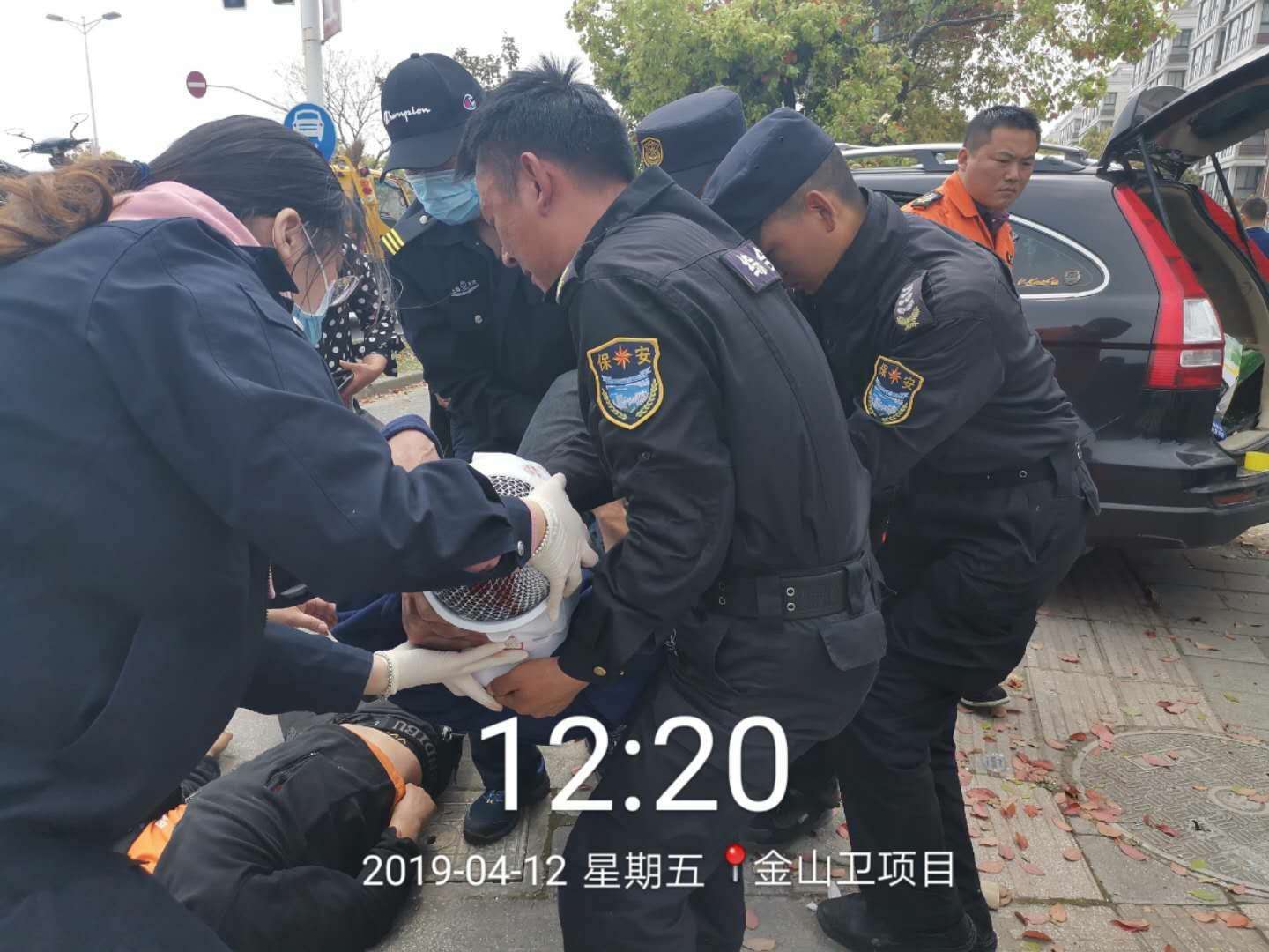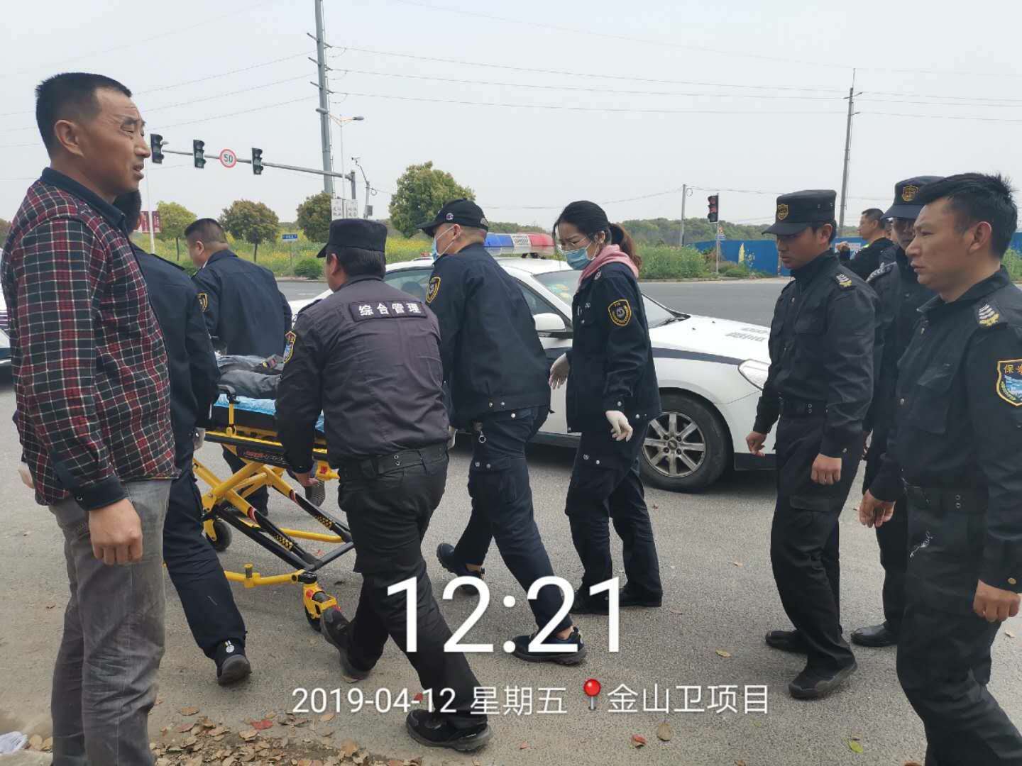 2019年4月12日,宗保公司駐金山衛項目宿舍附近發(fā)生交通事故,宗保特保隊員緊急救助傷者,受到好評。