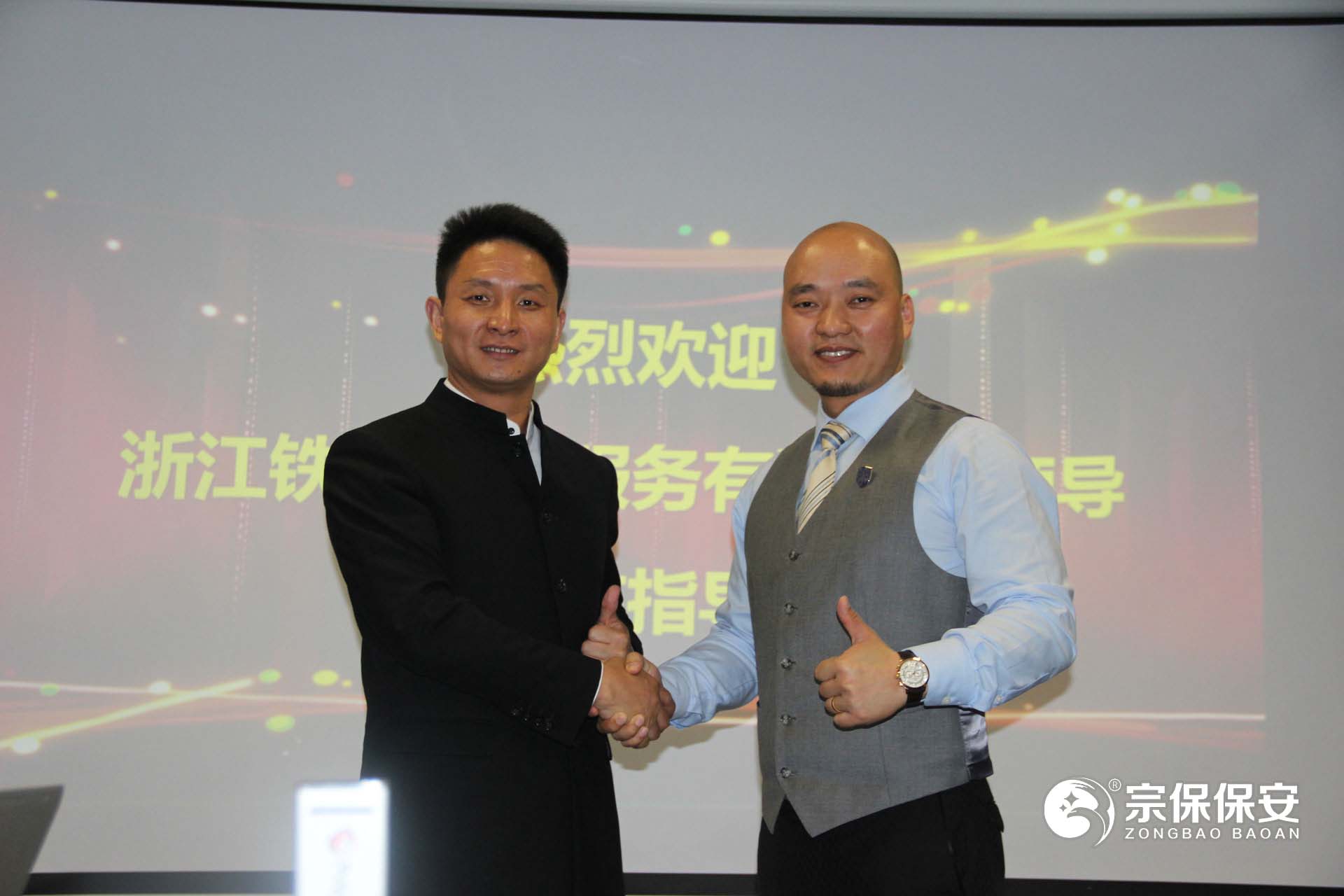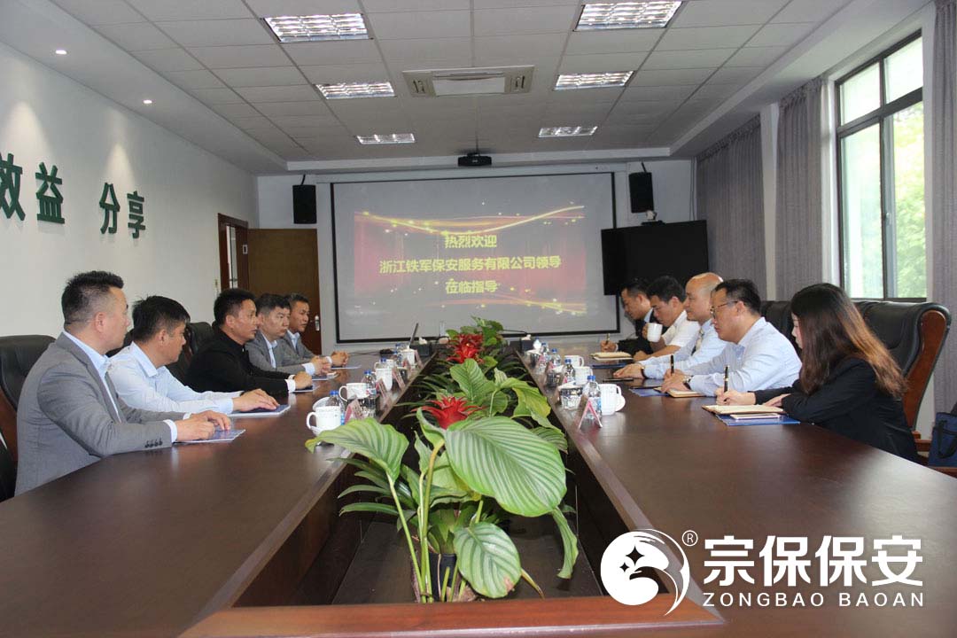 2019年5月17日上午,浙江鐵軍保安服務(wù)有限公司陳寶華董事長(cháng)一行5人到宗保公司進(jìn)行了為期半天的參觀(guān)考察和經(jīng)驗交流,馮中保董事長(cháng)熱情接待。