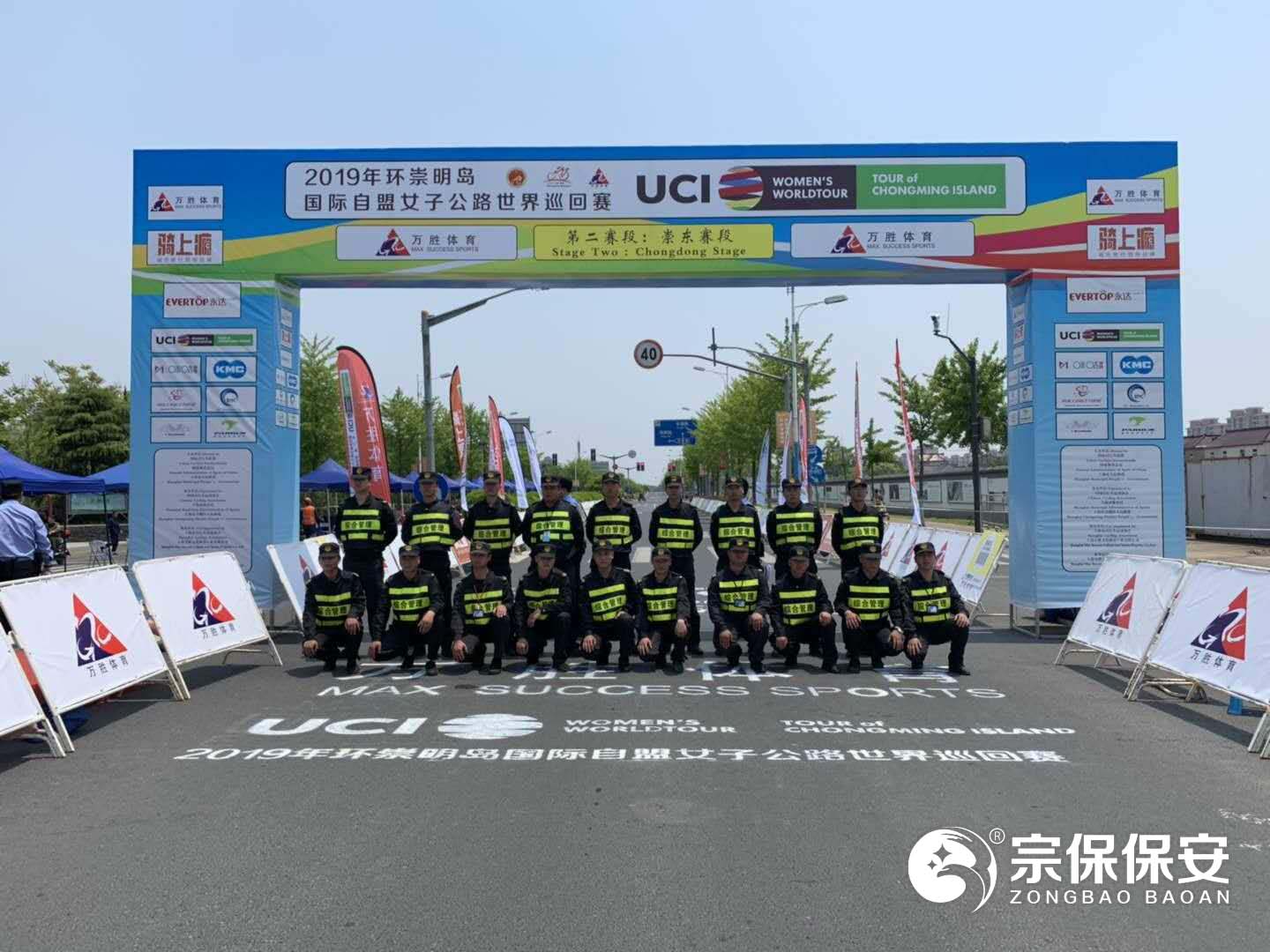 2019年5月9日,“綠色崇明,激情天堂”環(huán)崇明島國際自盟女子公路世界巡回賽在崇明島鳴槍發(fā)車(chē),宗保保安公司負責此賽事的現場(chǎng)安保任務(wù)。