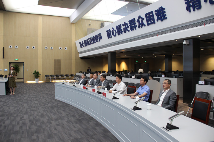馮董事長(cháng)一行參觀(guān)了浦東新區城運中心指揮大廳,觀(guān)看了宣傳短片。城運中心辦公室沈主任親自介紹了“城市大腦”管理平臺系統運行、精細化管理等方面的情況。宗保公司一行認真聆聽(tīng),并就相關(guān)具體問(wèn)題咨詢(xún)請教。