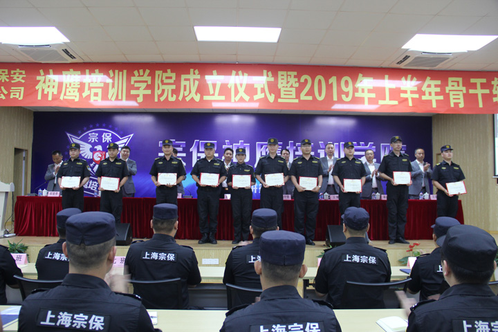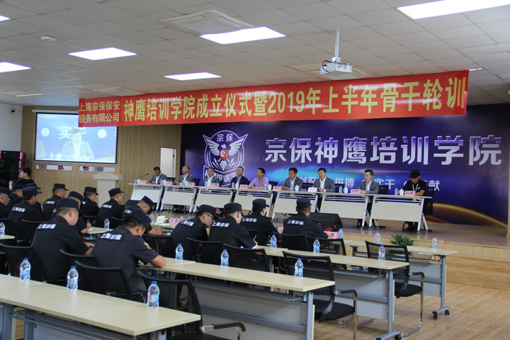 6月14日08:00,在宗保公司基地大禮堂,舉行宗保神鷹培訓學(xué)院成立儀式暨2019年上半年骨干輪訓開(kāi)班。上海宗保保安服務(wù)有限公司董事長(cháng)馮中保、總經(jīng)理晏軍及公司幾位副總悉數出席。