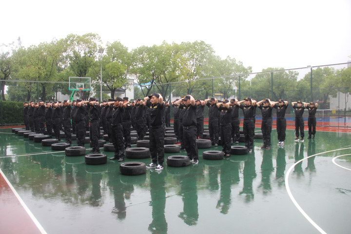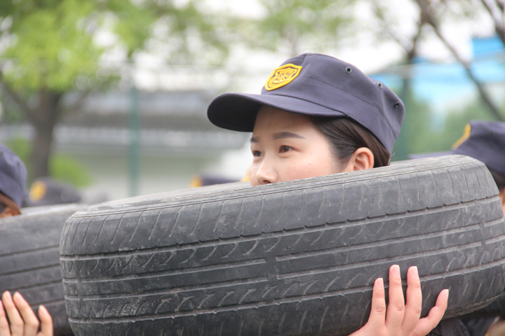 軍事訓練。培訓期間除了站軍姿訓練,讓學(xué)員們記憶深刻的,就是頭頸套輪胎繞場(chǎng)跑步和深蹲。如果留意,你會(huì )發(fā)現在隊伍的最邊上有一群女中豪杰,果然是巾幗不讓須眉,她們毅然和所有男學(xué)員一樣在雨中堅持著(zhù)。絕不放棄,堅持就是勝利。