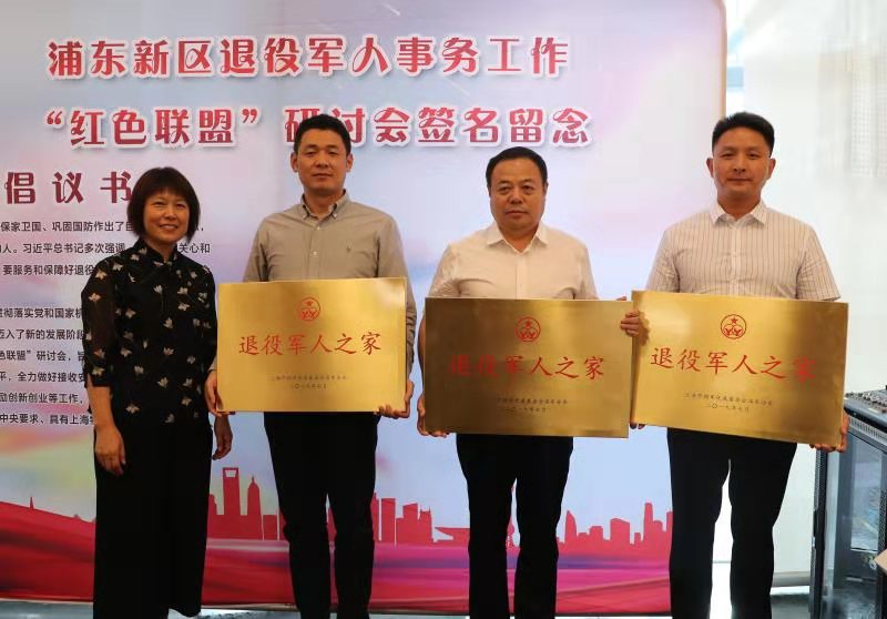 會(huì )上,浦東新區退役軍人事務(wù)局莊沈芳副局長(cháng)向安軍(上海)實(shí)業(yè)有限公司、上海壹佰米網(wǎng)絡(luò )科技有限公司、上海宗保保安服務(wù)有限公司等3個(gè)單位授予了“退役軍人之家”銅牌。