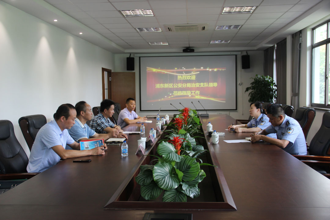 2019年7月17日上午,浦東公安分局治安支隊張翼副支隊長(cháng)、保安管理科馬杰科長(cháng)蒞臨公司,調研指導公司保安隊員教育培訓工作,馮中保董事長(cháng)全程陪同。
