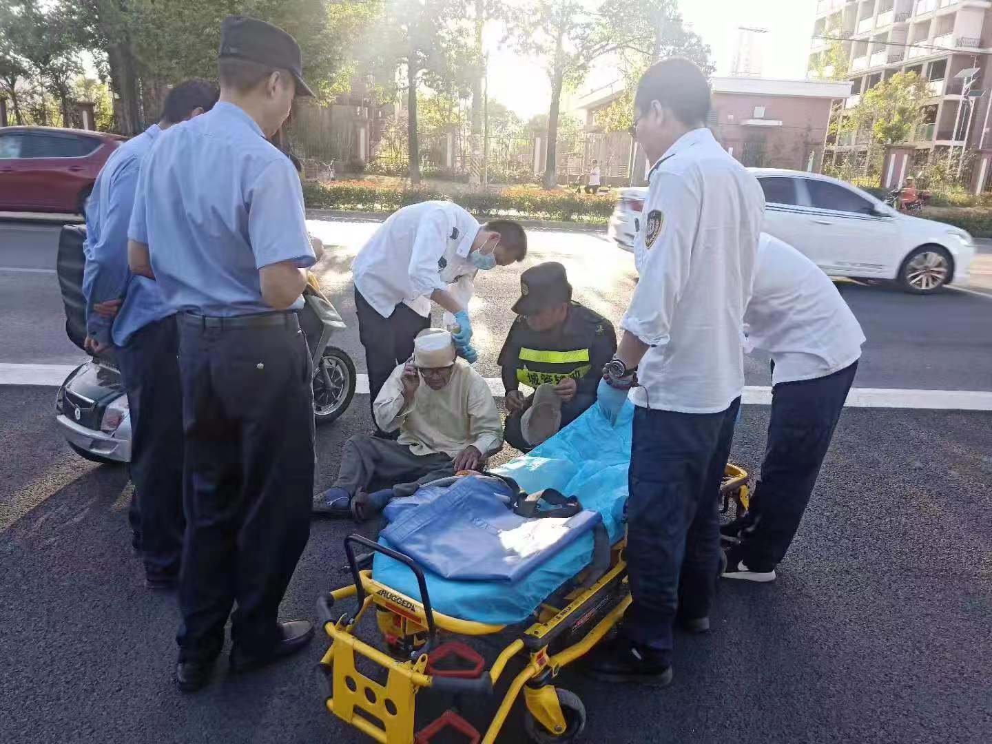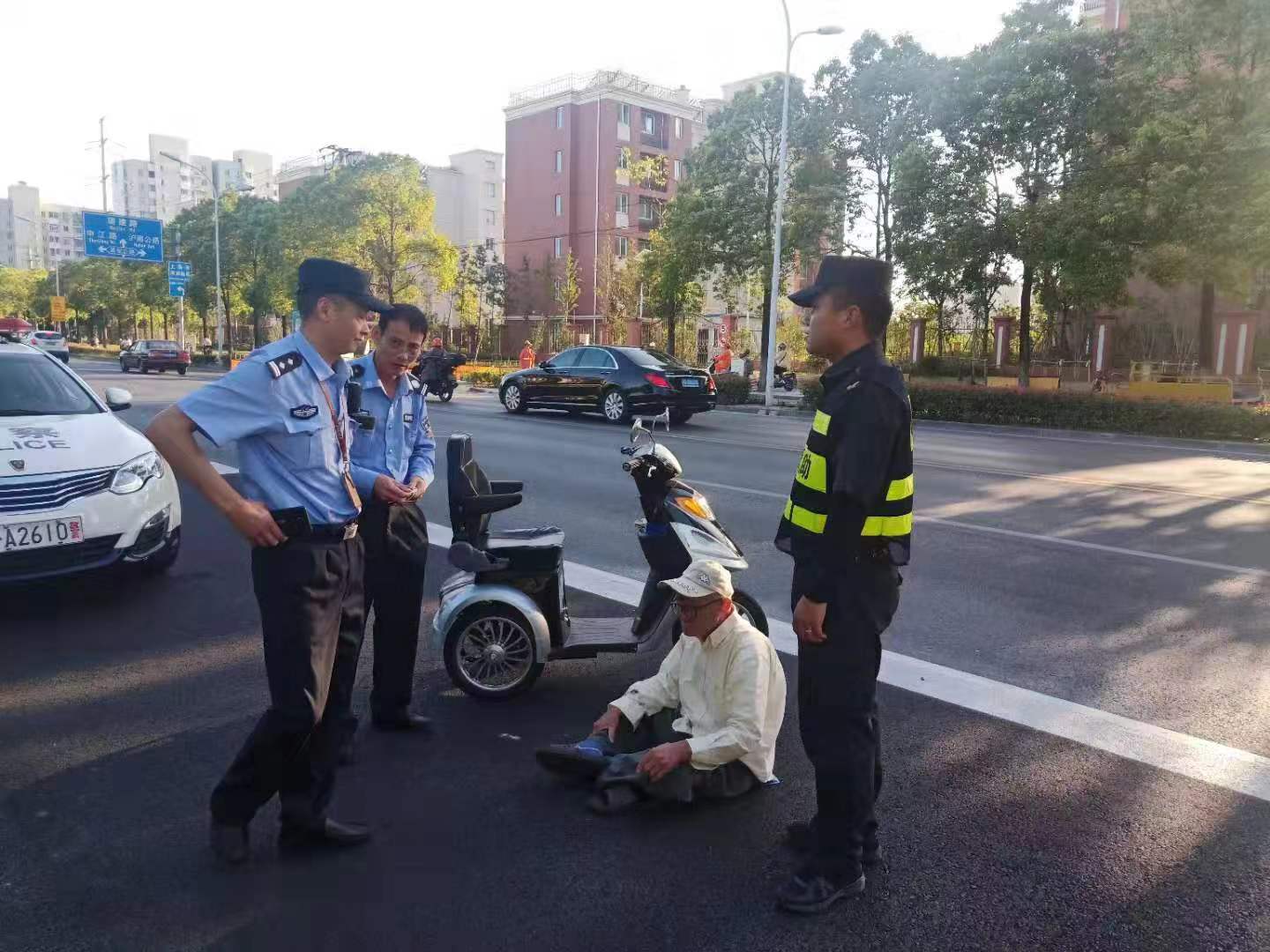 老人摔倒伸援手 民警路人皆點(diǎn)贊——周浦市容機動(dòng)組蘇雙協(xié)助民警送受傷老人就醫