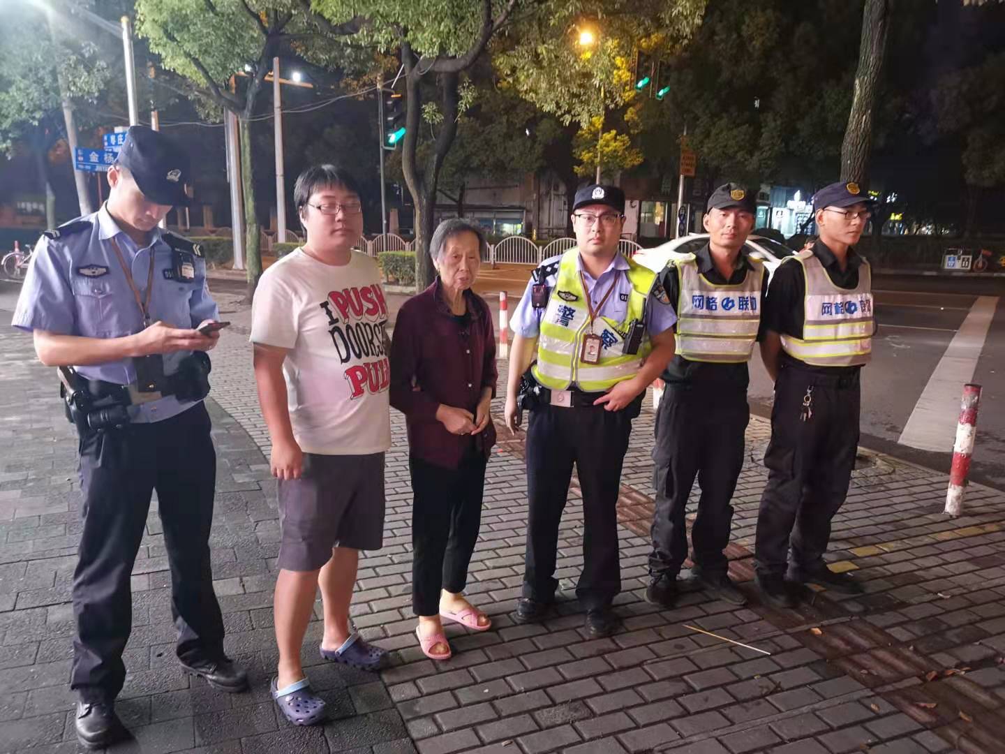 當天21:45左右,李毅和任東巡邏至金楊路618號第一商城門(mén)口時(shí),遇到一位上了年紀的阿姨。老阿姨說(shuō)話(huà)家鄉方言重,口齒含糊表達不清,難以聽(tīng)懂。手勢加語(yǔ)言反復溝通后得知,老人迷路需要幫助。小李和小任立即將這一情況上報給當班負責人,并電話(huà)報警。很快,派出所民警趕到現場(chǎng),了解情況,幫助處理。