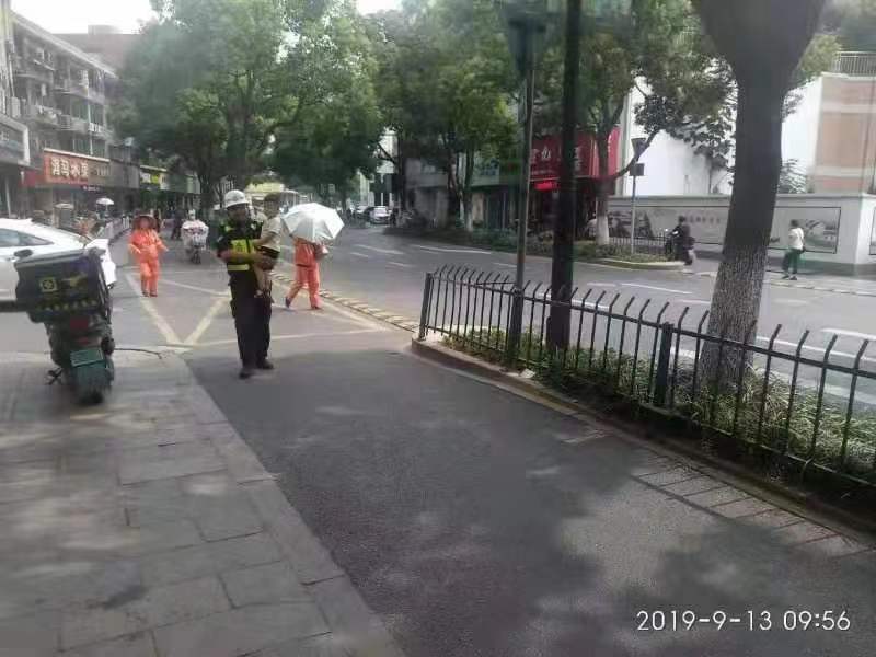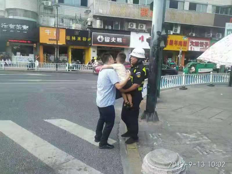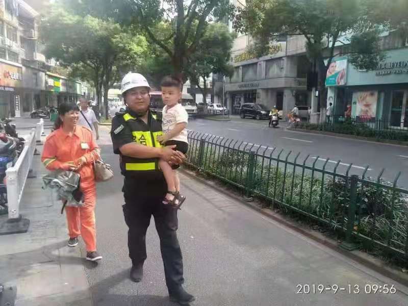 9月13日,浙江民泰駐臨平市容項目隊員張艮振和岳壯熱心幫助走失兒童找到父親,受到群眾好評。
