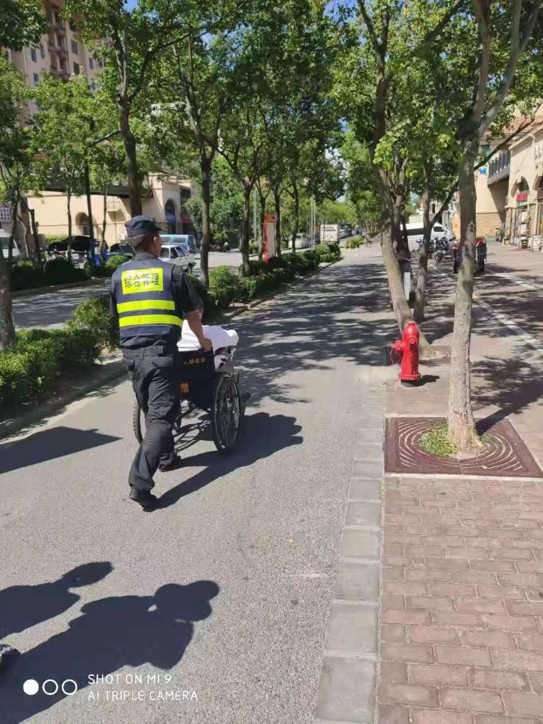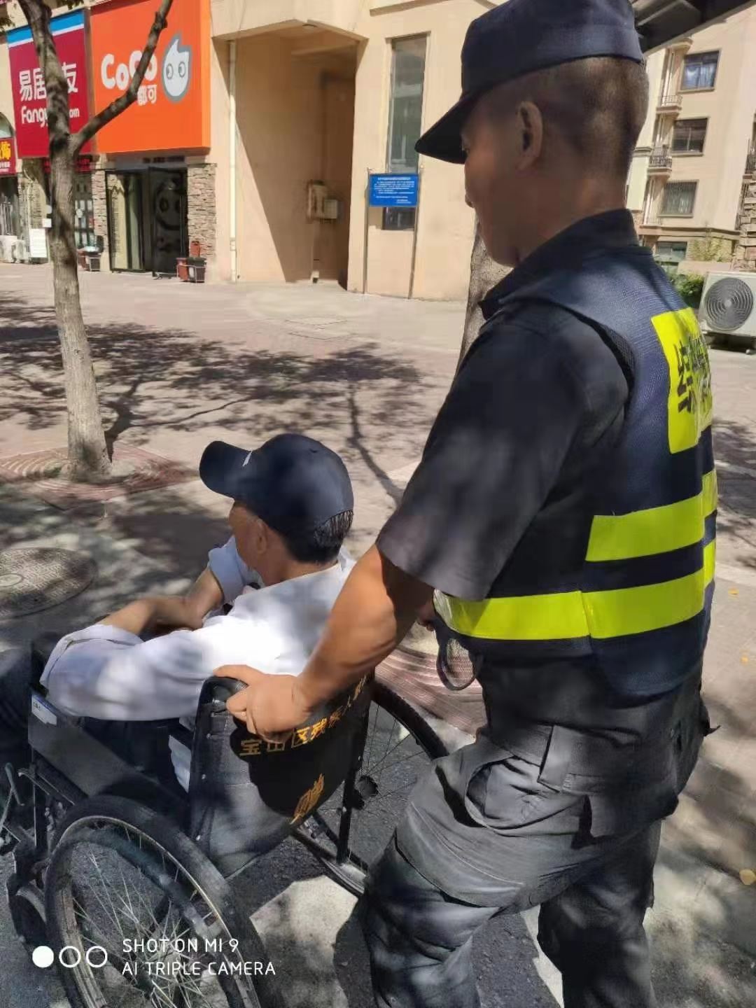 8月29日,宗保公司駐金楊街道市容輔助項目隊員李毅和任東幫助迷路的老阿姨找到家人,受到好評。