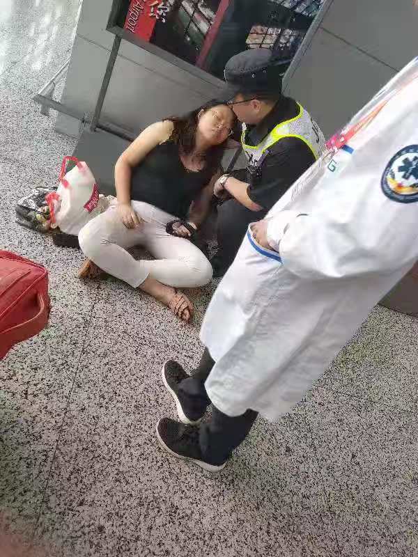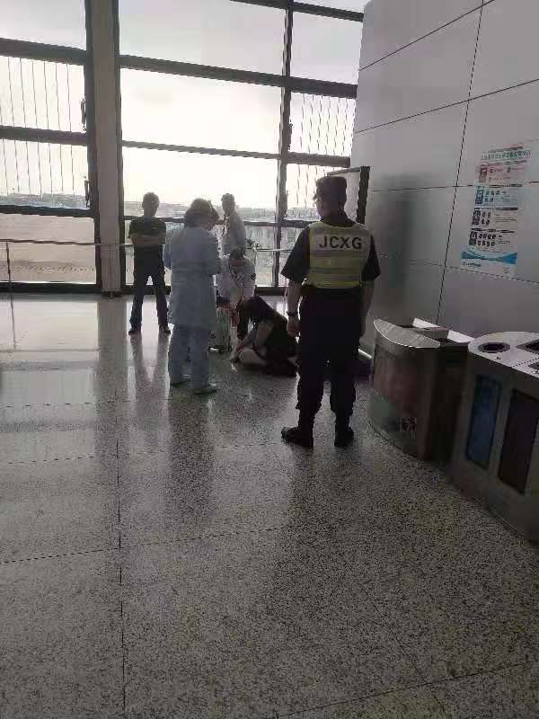無(wú)獨有偶。此事發(fā)生后的第三天,虹橋機場(chǎng)也發(fā)生一起女游客暈倒的險情,同樣被宗保公司的隊員及時(shí)救助。
