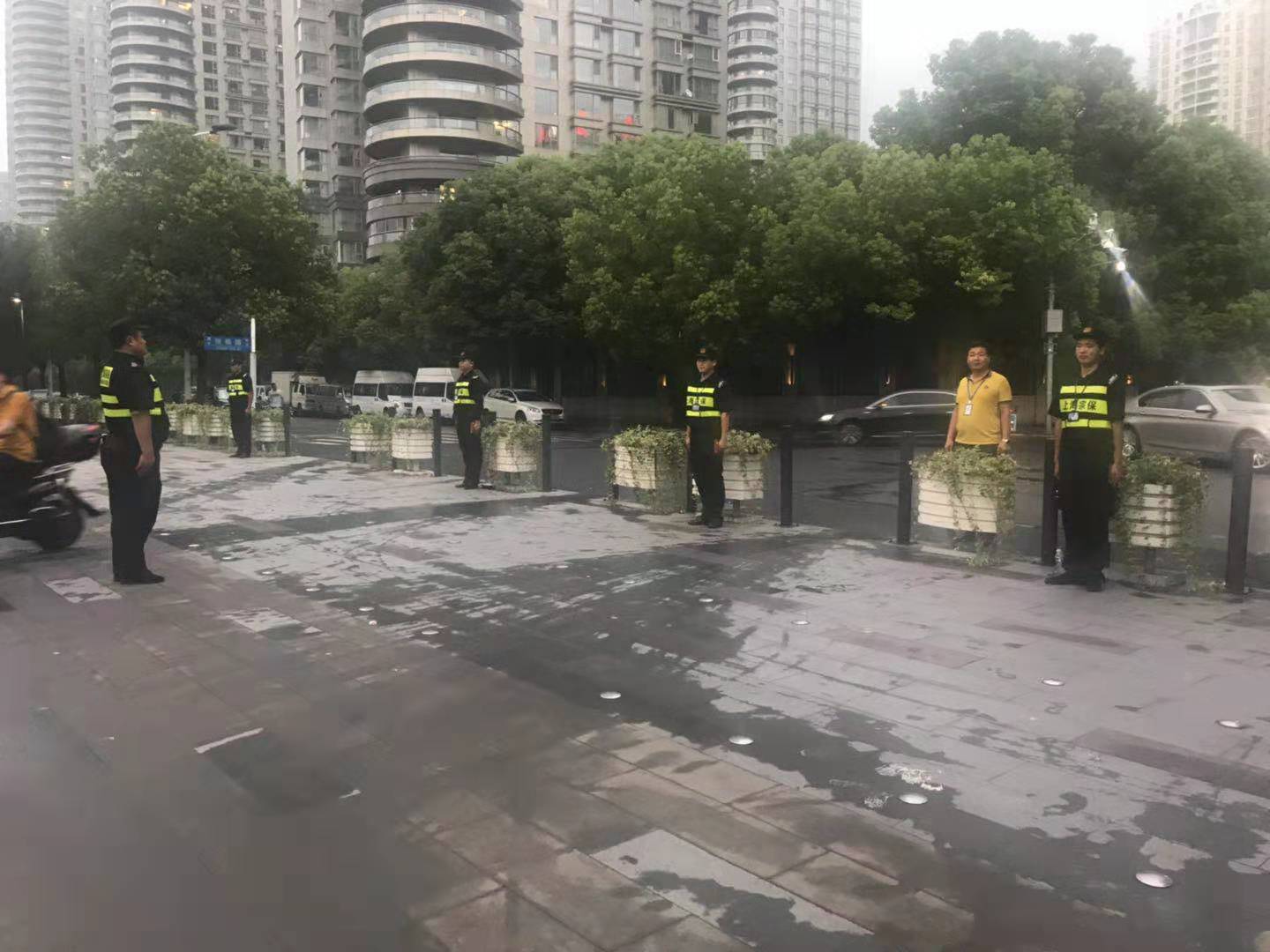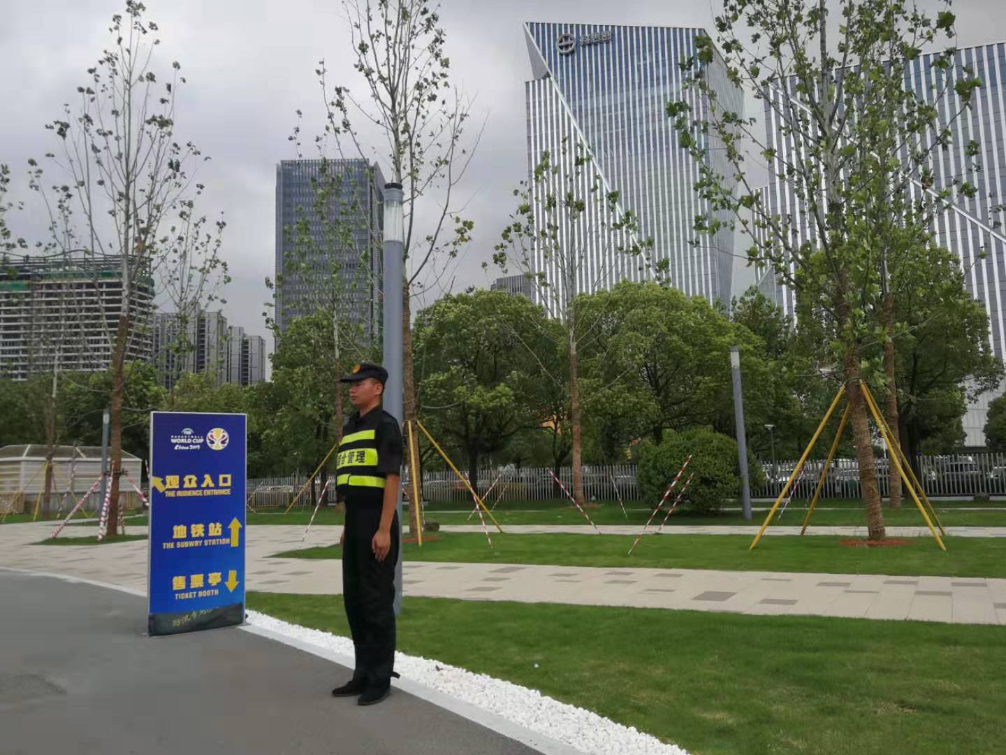 賽事期間,正值上海高溫多雨,臺風(fēng)交替。高溫酷暑下,宗保隊員不畏高溫,戰炎熱,斗酷暑,堅持賽場(chǎng)長(cháng)時(shí)間值守不懈??;臺風(fēng)暴雨中,身穿雨衣,全身雨汗濕透,但依然始終身姿挺拔;臨近比賽,人流如潮,一個(gè)個(gè)挺立的身影如同路標,顯眼醒目,體現了宗保公司隊員過(guò)硬的素質(zhì),優(yōu)良的作風(fēng)。