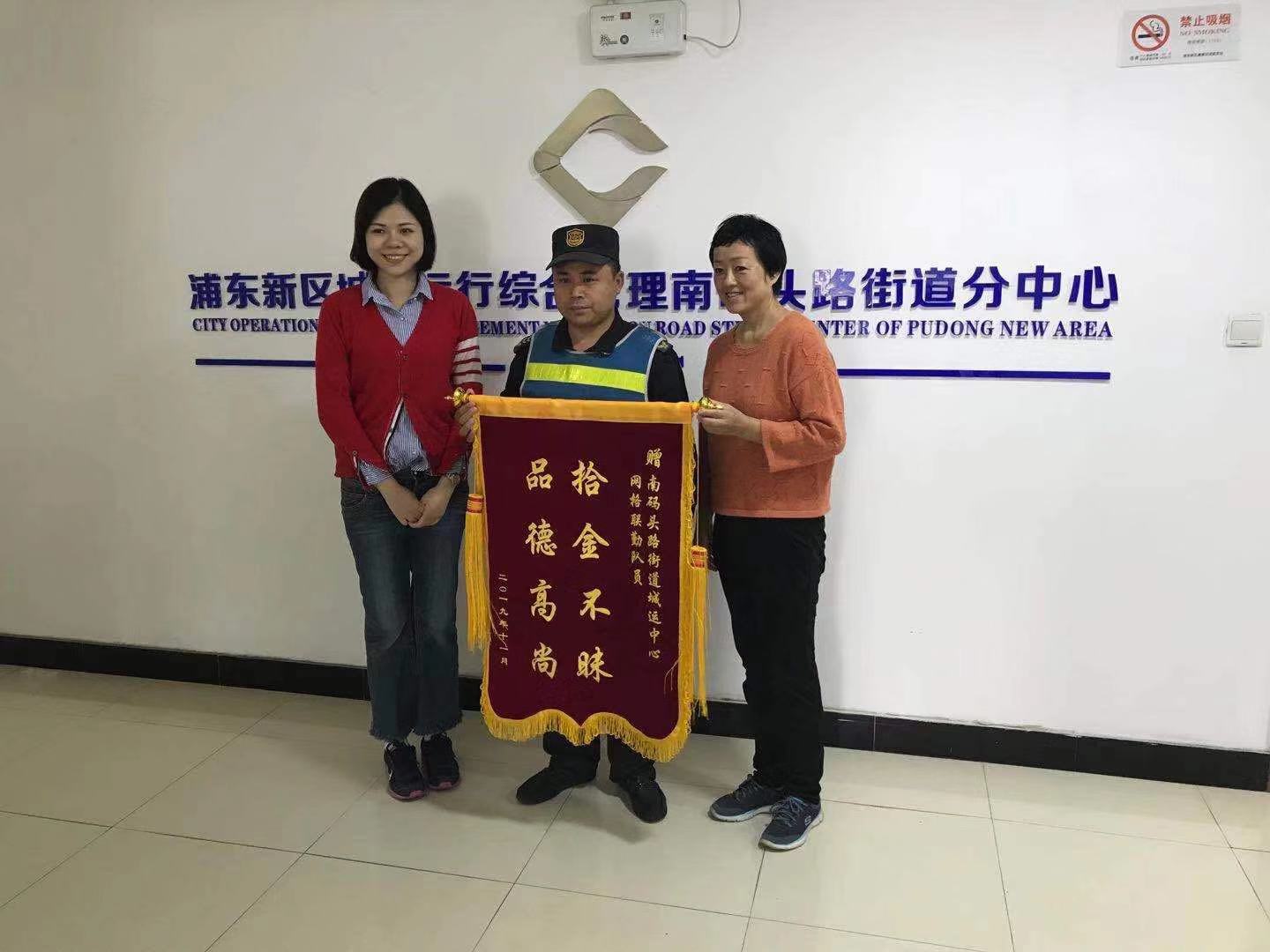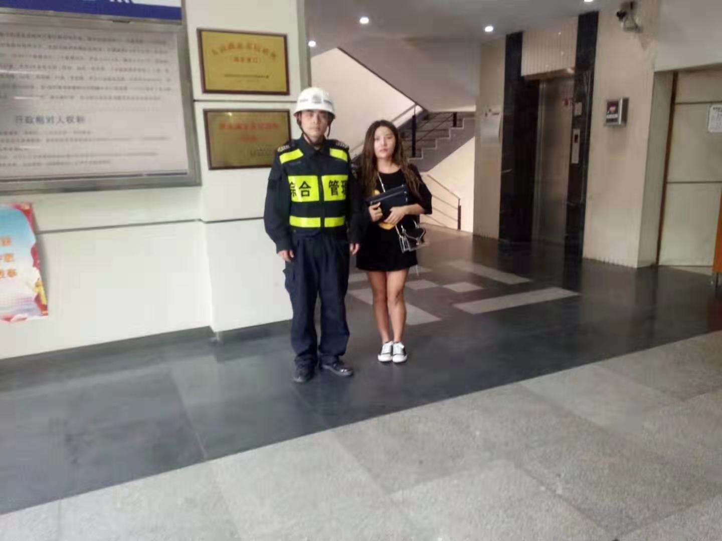 10月17號13點(diǎn)30分左右,民泰公司駐臨平新城市容項目隊員曹陽(yáng)在九曲營(yíng)路巡查時(shí)撿到一個(gè)手提包,立即將此事上報當班負責人張艮振。張艮振趕到現場(chǎng)后打開(kāi)包裹檢查,里面有兩張身份證、一張港澳通行證、一張銀行卡、20000元收條一張、房屋產(chǎn)權證明一份,在房屋產(chǎn)權證明上記有一個(gè)手機號碼。張艮振抱著(zhù)試試看的想法撥通了這個(gè)電話(huà),通過(guò)電話(huà)交談了解到該手提包的失主家住南苑街道,告訴失主我們是城市輔助管理的民泰公司保安員,我們已經(jīng)將手提包交到臨平城管中隊,請失主放心不要著(zhù)急。