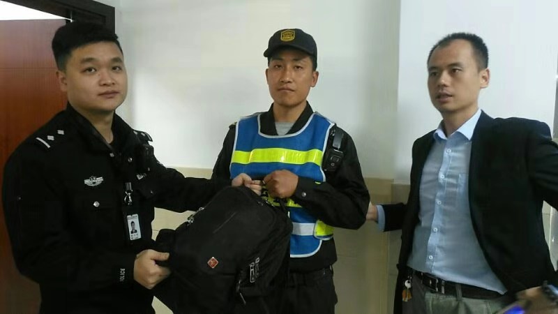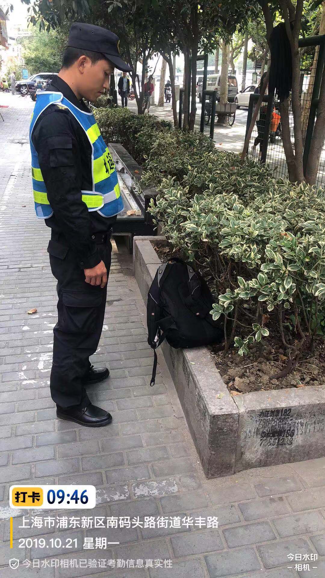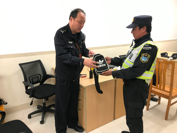 10月21日上午09:30分左右,宗保公司駐南碼頭項目隊員賈同偉,在南碼頭街道花豐路段巡查時(shí)發(fā)現一個(gè)黑色背包,遂聯(lián)系項目負責人王團結到現場(chǎng)處理。王團結趕到現場(chǎng)發(fā)現包內有一部筆記本電腦和其它物品,立即走訪(fǎng)附近的商戶(hù)和居民,無(wú)人認領(lǐng)。