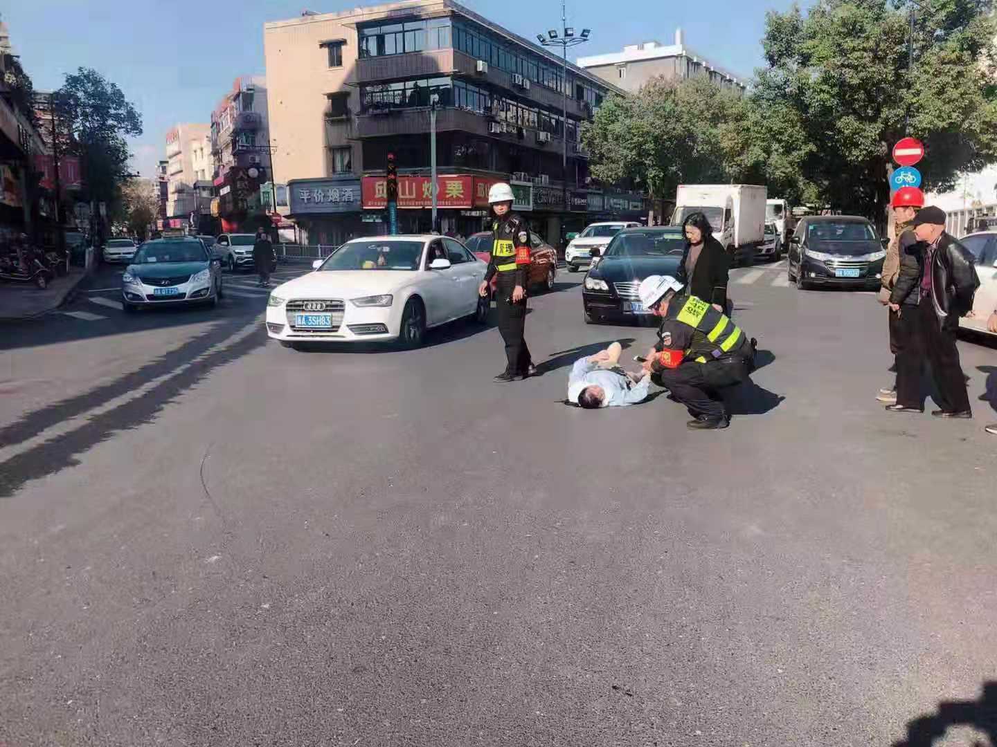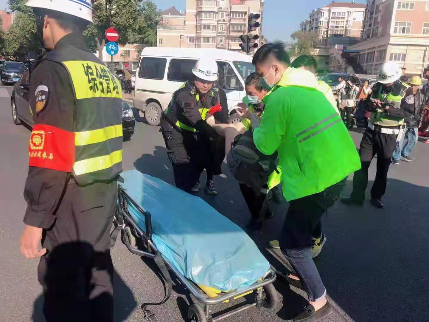 阿姨被車(chē)撞倒 保安緊急送醫——高行市容隊員積極救助車(chē)禍傷員