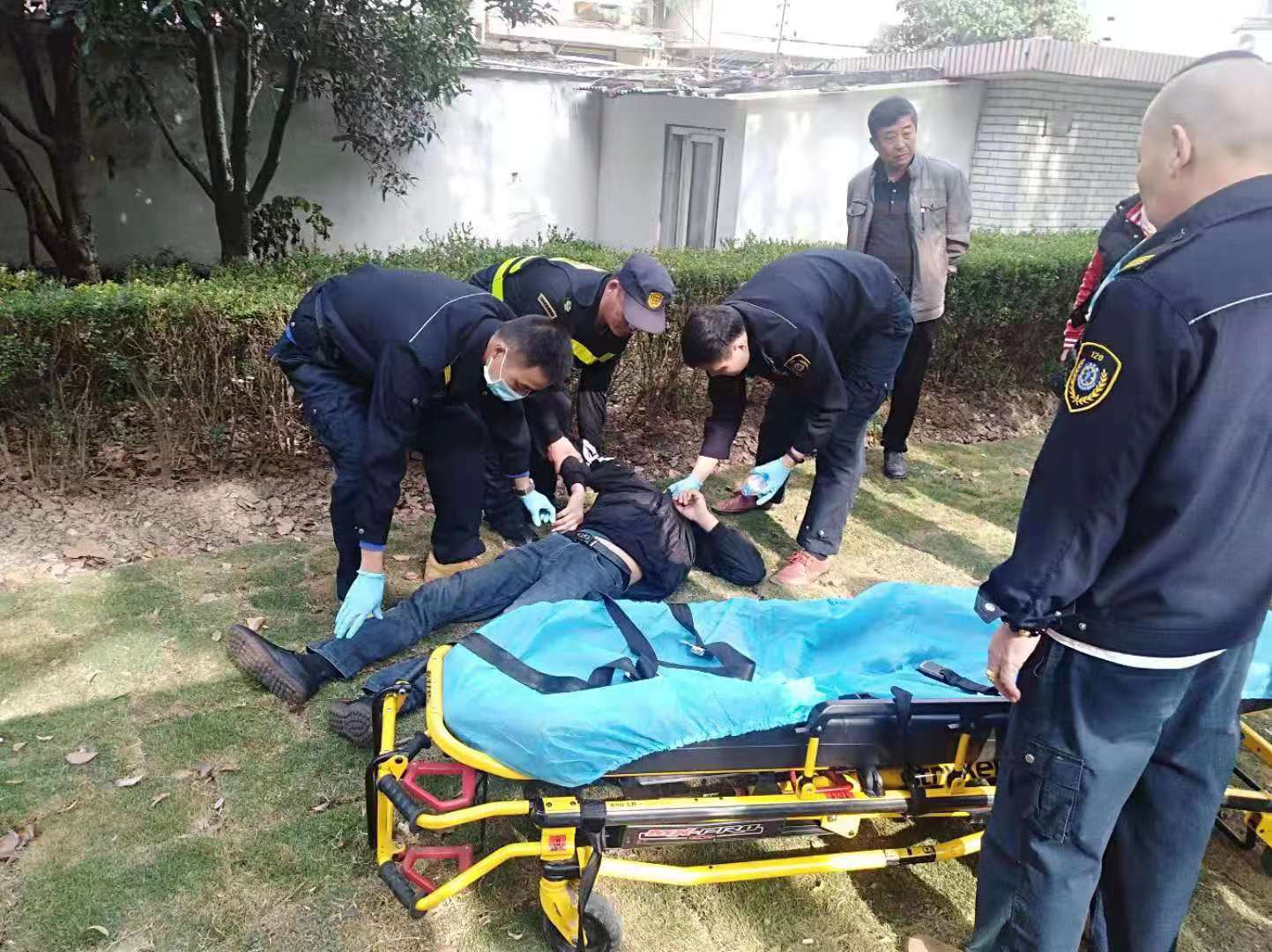 兩位隊員第一時(shí)間通知班組長(cháng)張艮振,并撥打110報警和120急救電話(huà)。隨后救護車(chē)到達現場(chǎng),兩位隊員協(xié)助醫護人員把受傷女士抬上擔架趕往醫院就醫。