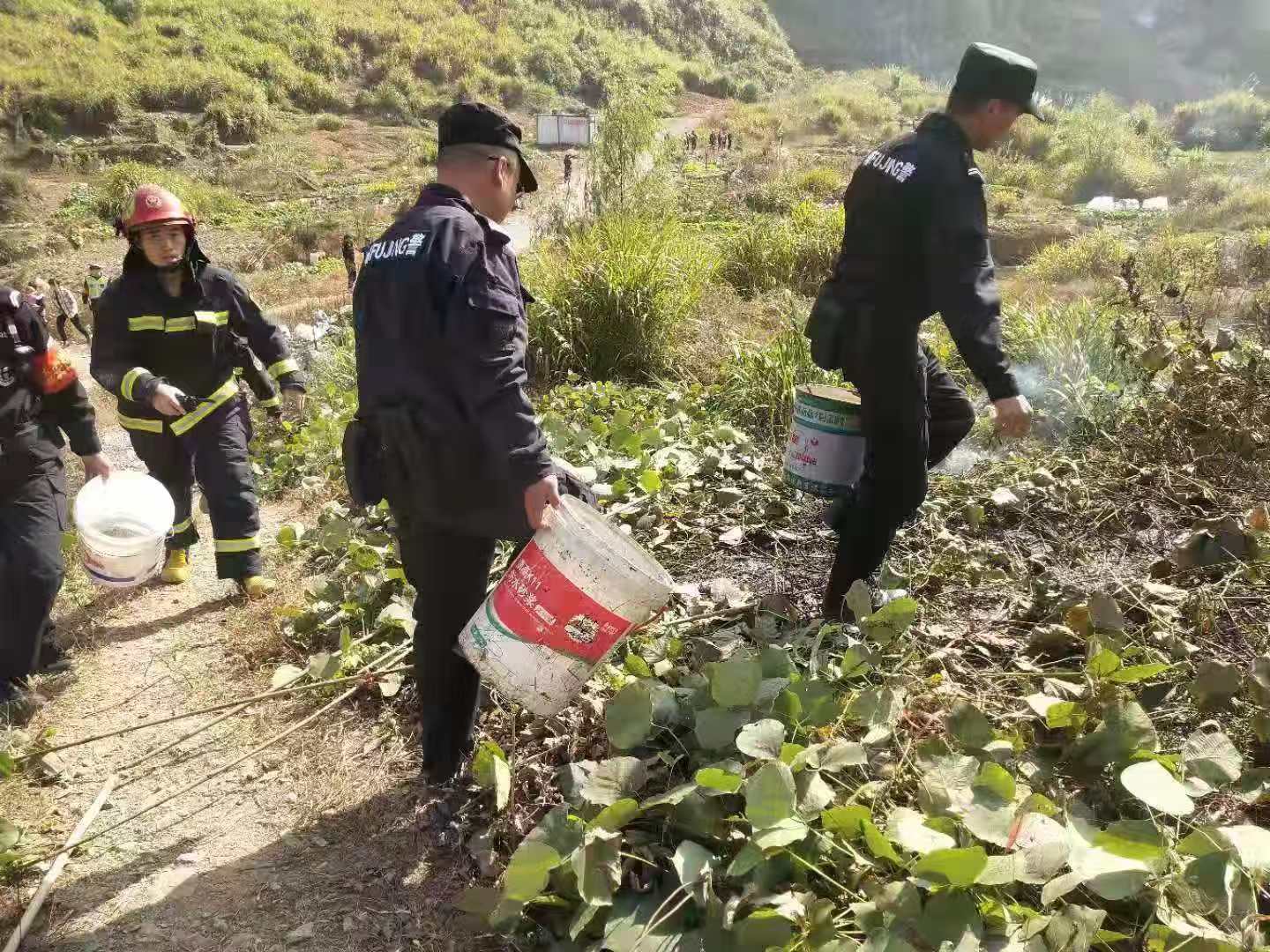三位隊員趕到現場(chǎng)時(shí),得知是一對七十多歲的老夫妻在山上焚燒桔梗引起大面積火災,現場(chǎng)濃煙滾滾。此時(shí),代班組長(cháng)也第一時(shí)間帶著(zhù)支援隊員到達現場(chǎng)展開(kāi)救援,使用車(chē)上配備的滅火器先期滅掉旁邊的小火,阻止火勢蔓延。隨后派出所領(lǐng)導和消防員也陸續趕到現場(chǎng),提水、接水泵、噴水,在大家的共同努力下將大火撲滅,在確定現場(chǎng)無(wú)火星、無(wú)法復燃的情況下,有序撤離了現場(chǎng)。