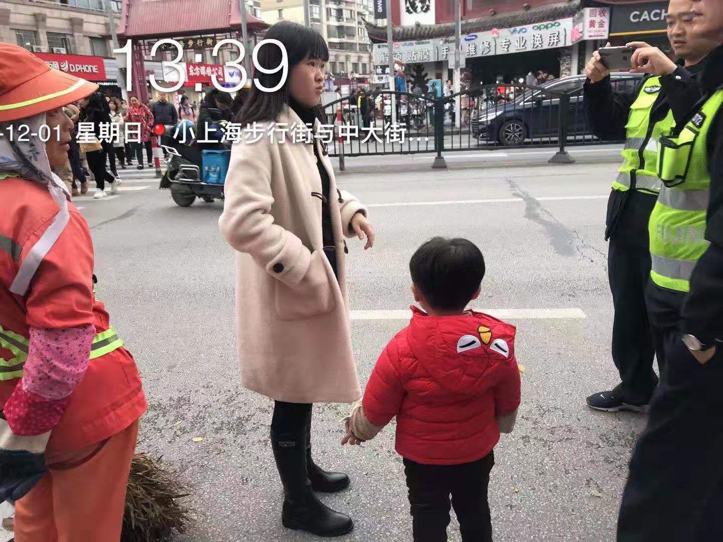 12月1日,周浦輔警隊員王云強13:22分巡邏至步行街121號正新雞排店門(mén)口時(shí),發(fā)現一個(gè)小男孩一直在哭泣,旁邊沒(méi)有家長(cháng)看護。于是,就上前詢(xún)問(wèn),得知小男孩和媽媽一起出來(lái)逛街,自己只顧玩,走著(zhù)走著(zhù)就找不到媽媽了,所以急得哭了起來(lái)。