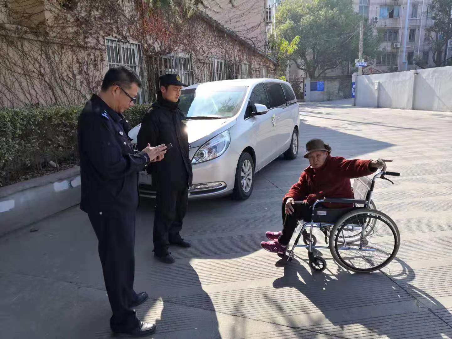 當天上午10點(diǎn)左右,侯震宇巡邏至康沈路佰田大富苑小區門(mén)口時(shí),看到一位年邁的老人神情不安地四處張望。小侯趕緊走上去詢(xún)問(wèn)情況——老人年紀大了,分不清回家的方向,也沒(méi)有力氣推輪椅了。侯震宇立即將此事回匯報給派出所值班室。