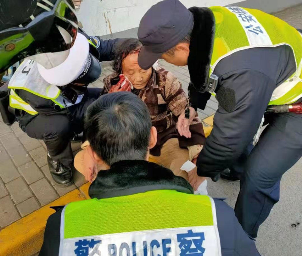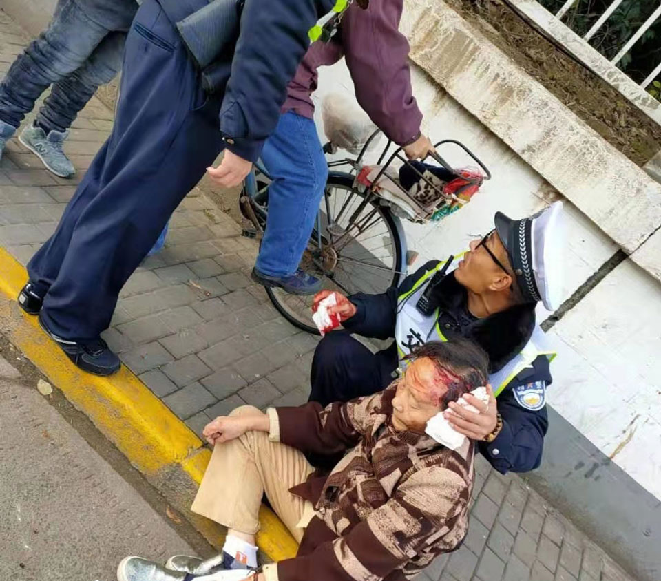 騎車(chē)摔倒血流不止 熱心特保積極救助——閔行交通協(xié)警項目隊員積極救助受傷群眾