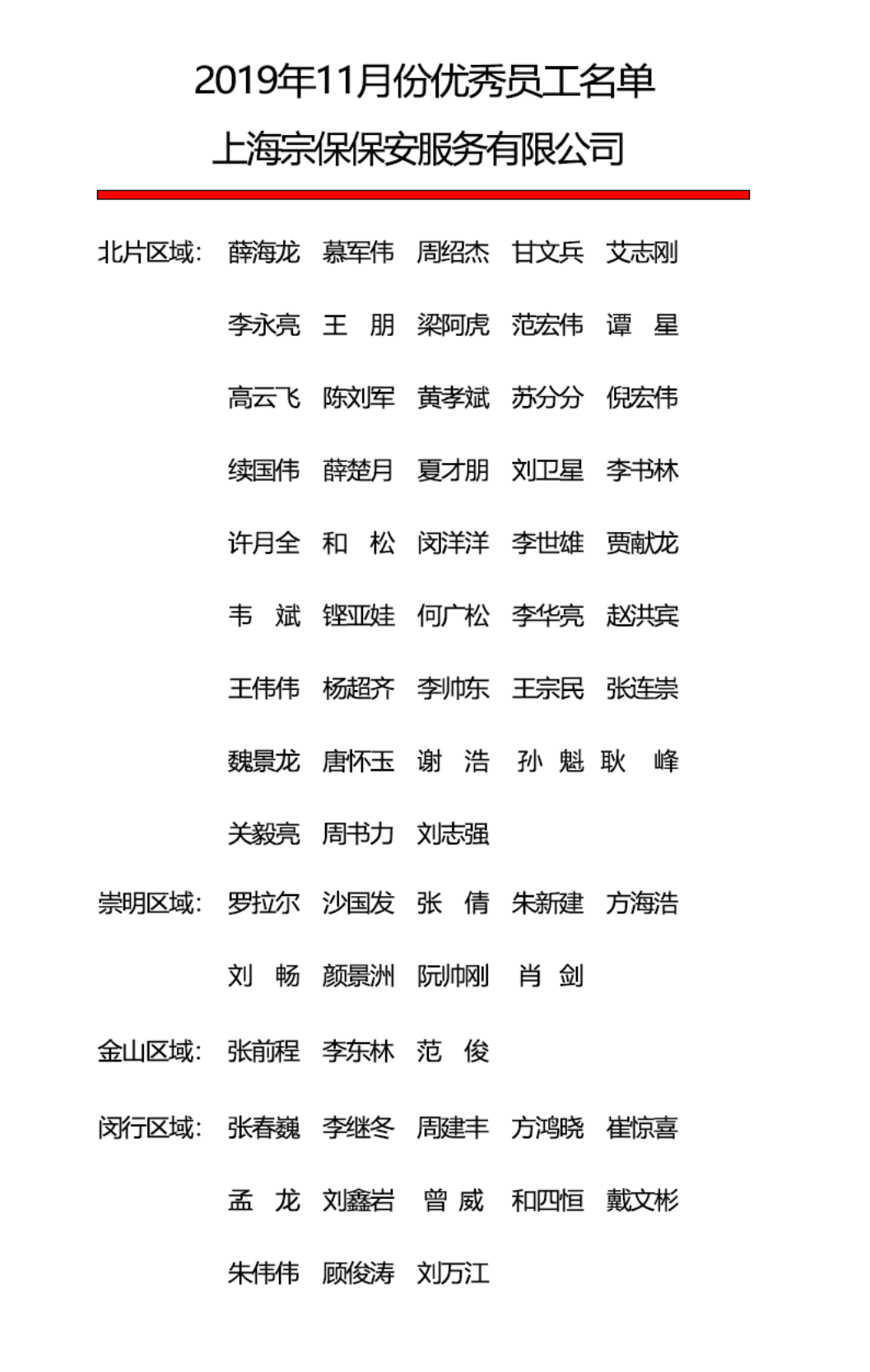 附:《11月份優(yōu)秀員工名單》上海宗保保安服務(wù)有限公司