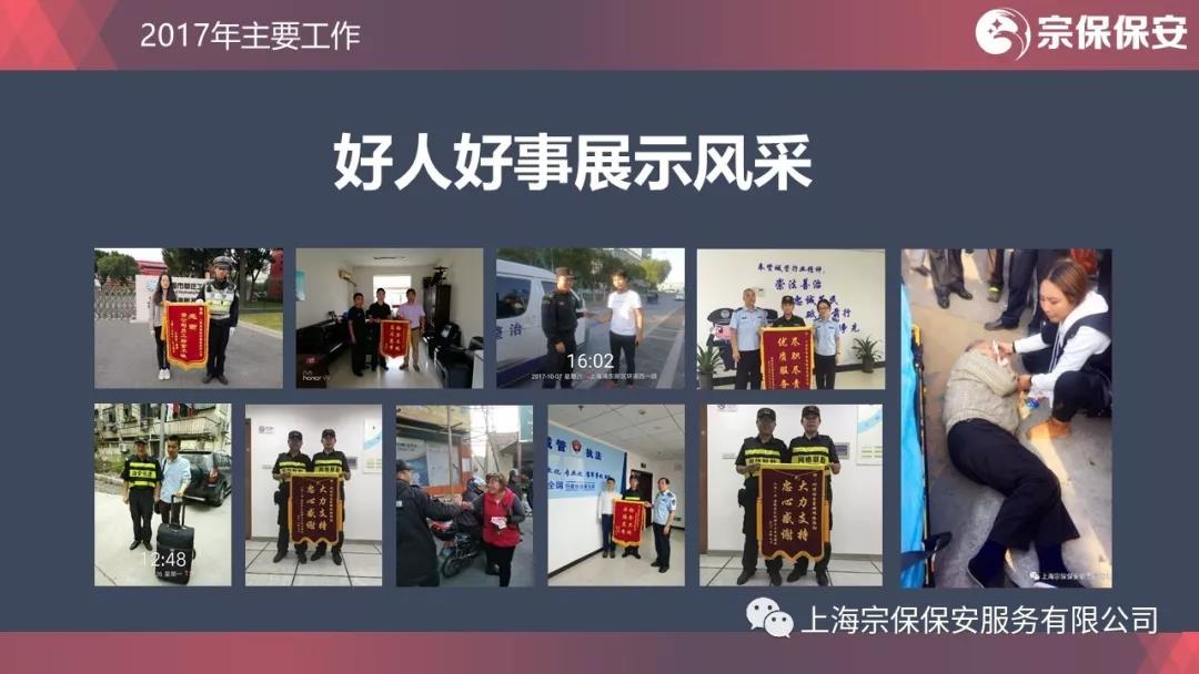 天道酬勤,日新月異。剛剛過(guò)去的2017年,對宗保人來(lái)說(shuō),又是一個(gè)奮進(jìn)之年、實(shí)干之年、收獲之年。宗保人深入學(xué)習貫徹習近平總書(shū)記系列重要講話(huà)精神,把握新形勢,適應新變化,聚焦城市最有序、最安全、最干凈的總愿景,對標城市安全運行的總目標,以十九大安保工作為主線(xiàn),團結奮進(jìn)、埋頭苦干,為滬浙皖經(jīng)濟社會(huì )發(fā)展做出了積極貢獻。