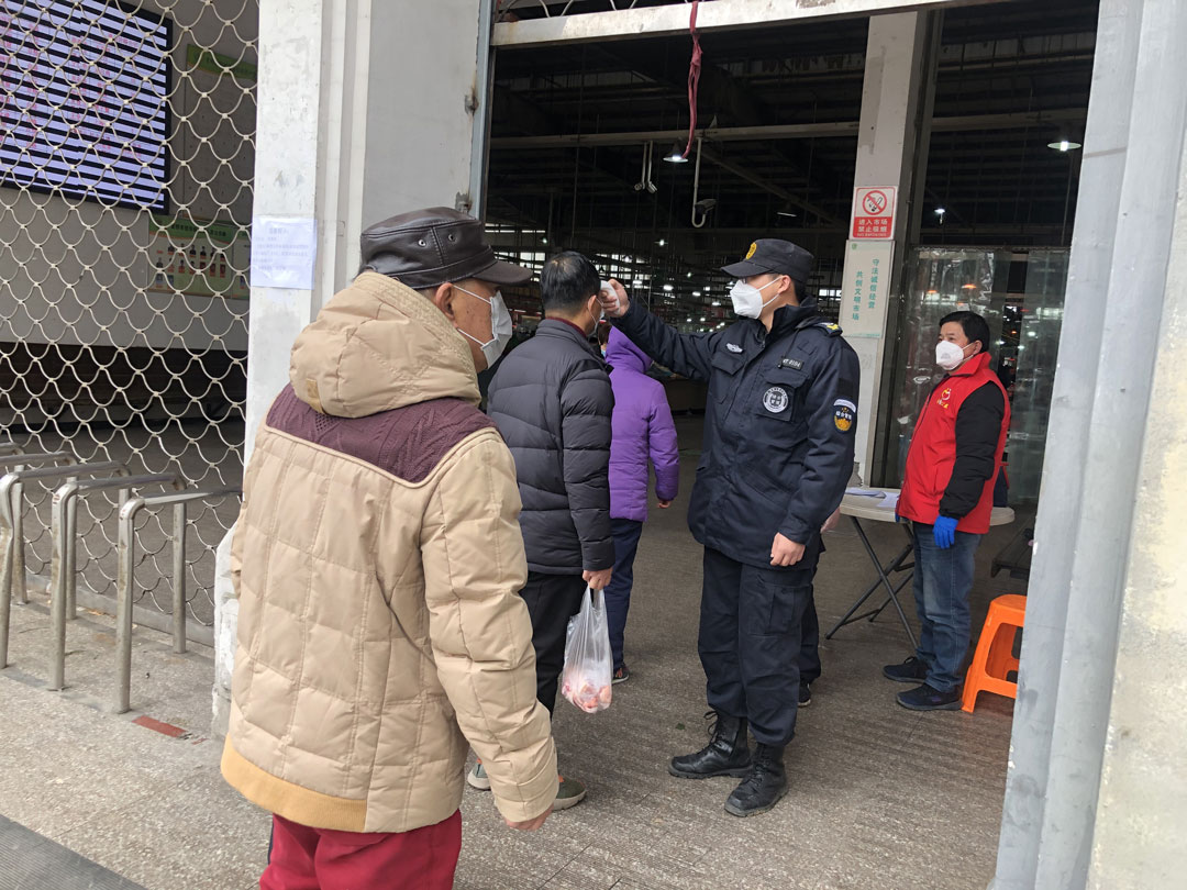 七、配合菜場(chǎng)管理人員對進(jìn)菜場(chǎng)人員體溫檢測。