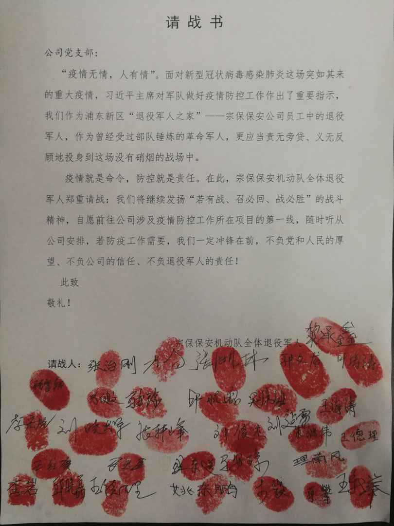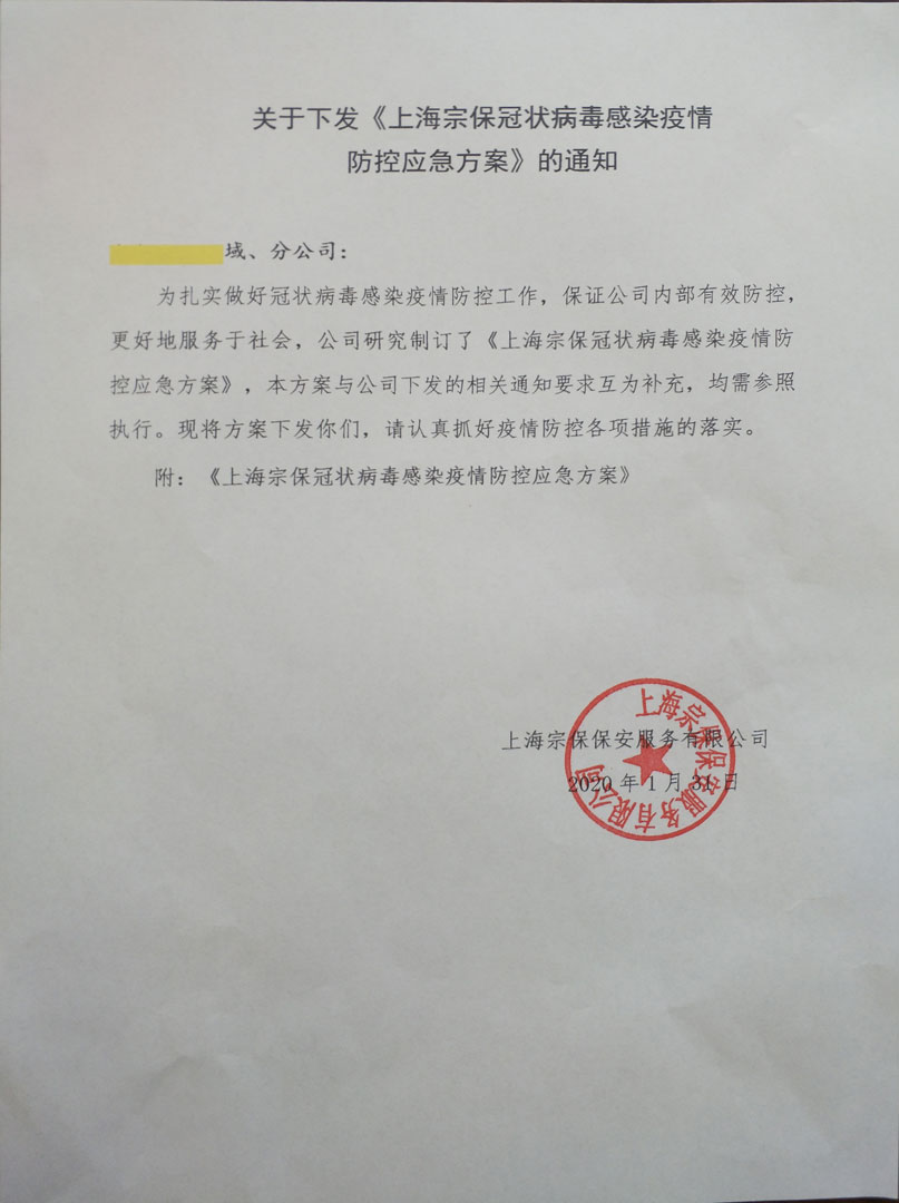 疫情就是命令,防控就是責任。上海宗保保安服務(wù)有限公司通過(guò)強化工作責任、開(kāi)展疫情教育、制定有力措施,堅決把疫情防控工作落到實(shí)處,力爭最終實(shí)現公司內部安全穩定的總目標。