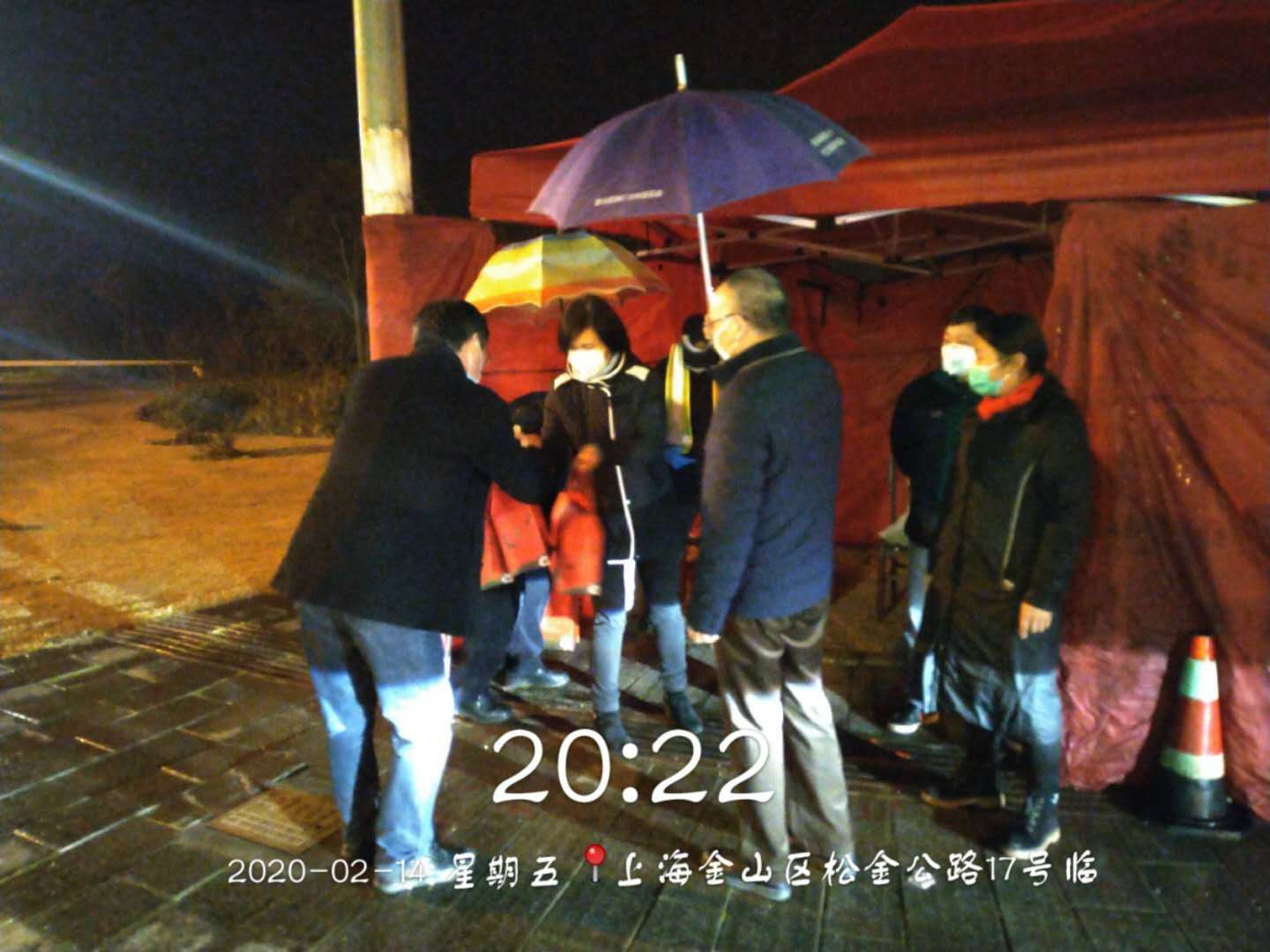 2月17日晚,金山衛鎮鎮長(cháng)周斌現場(chǎng)檢查指導疫情防控工作,看望慰問(wèn)疫情防控一線(xiàn)的宗保員工。