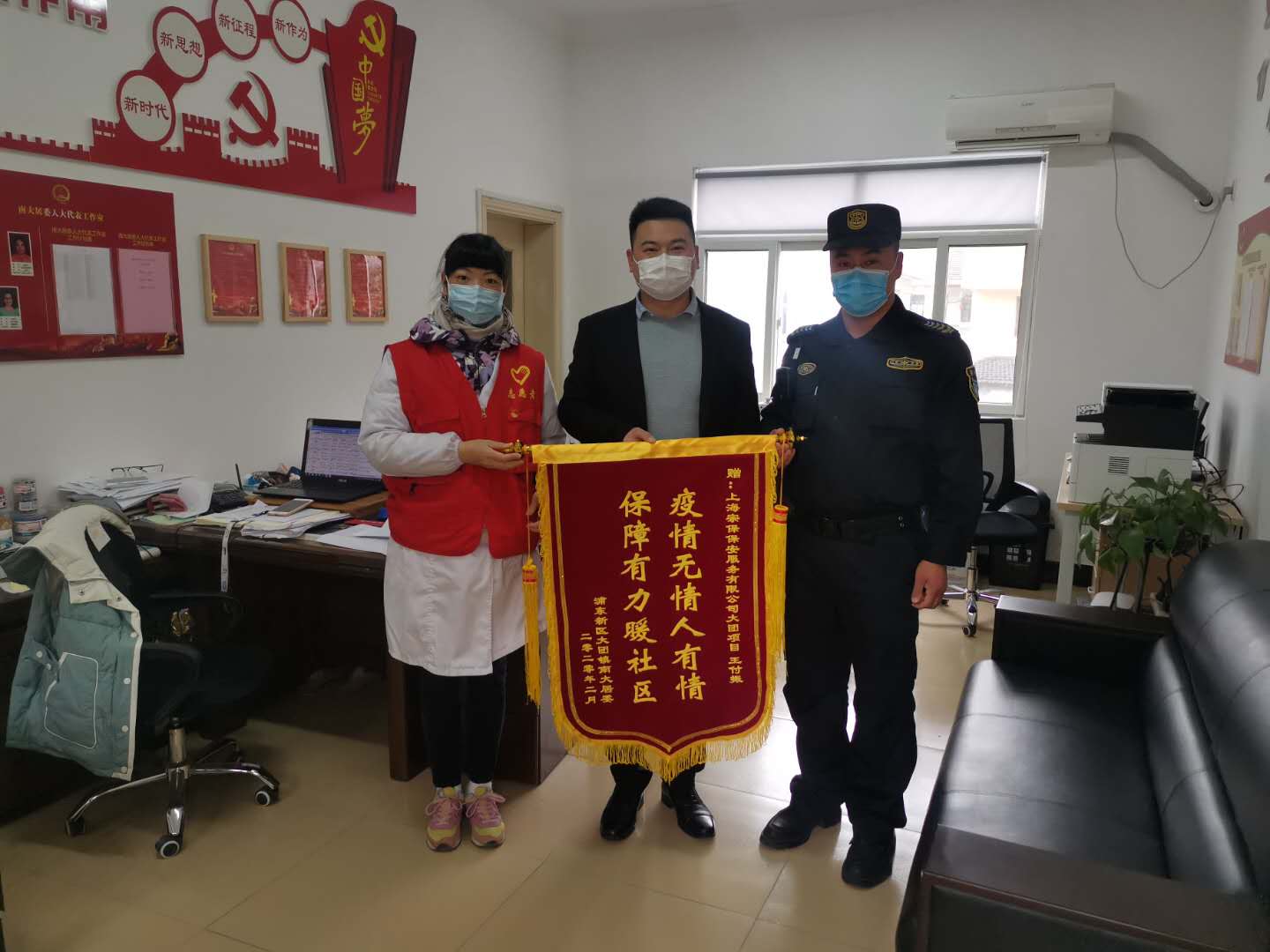 2月28日,浦東新區大團鎮南大居委送來(lái)一面錦旗,贊揚公司駐大團市容項目在疫情防控中的工作表現,對全體隊員表示感謝。