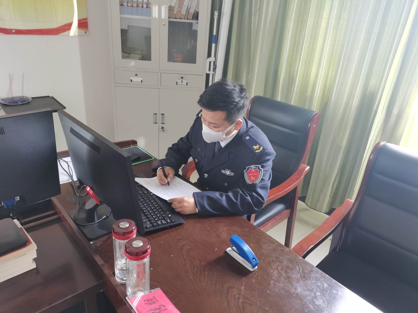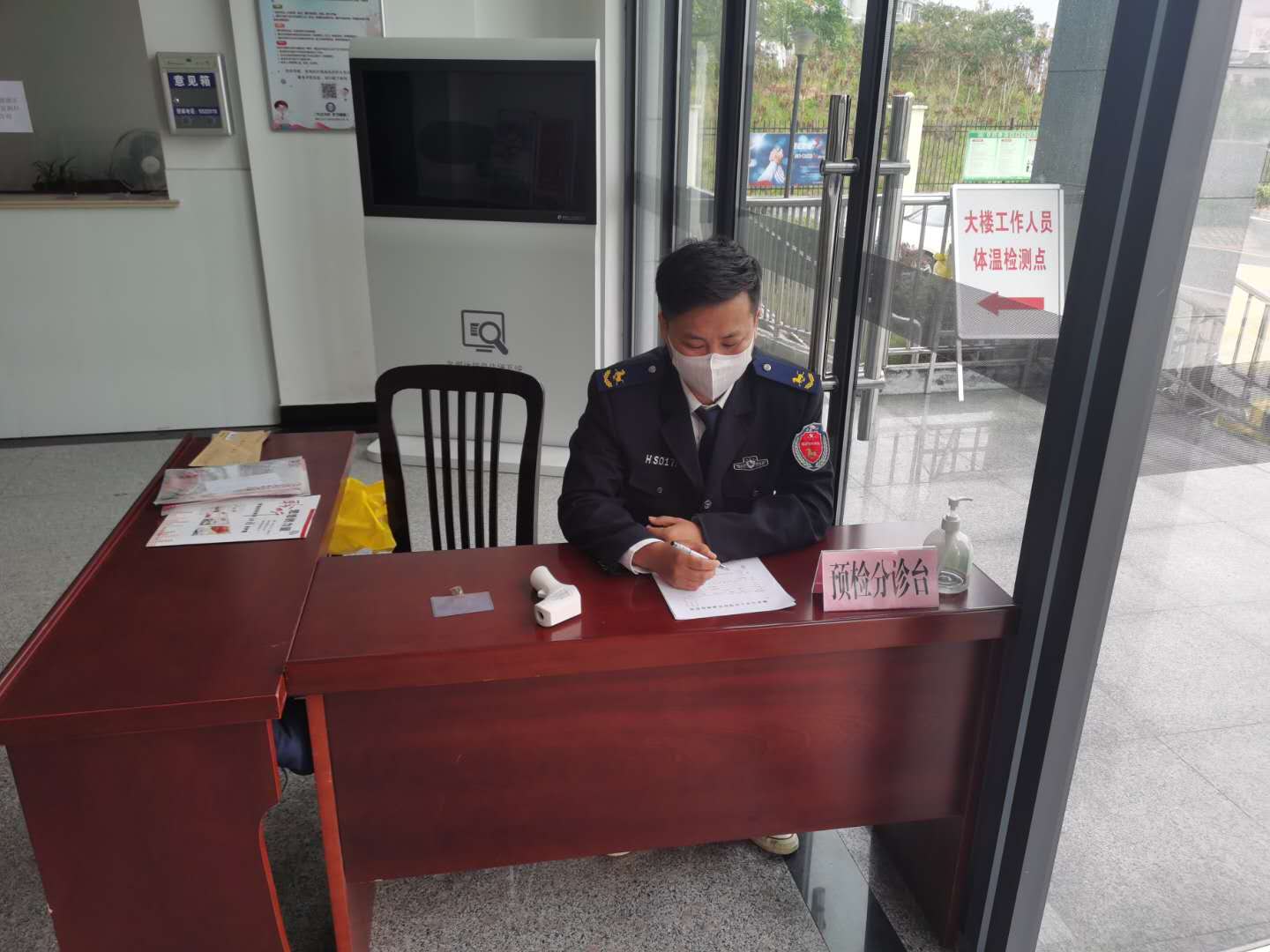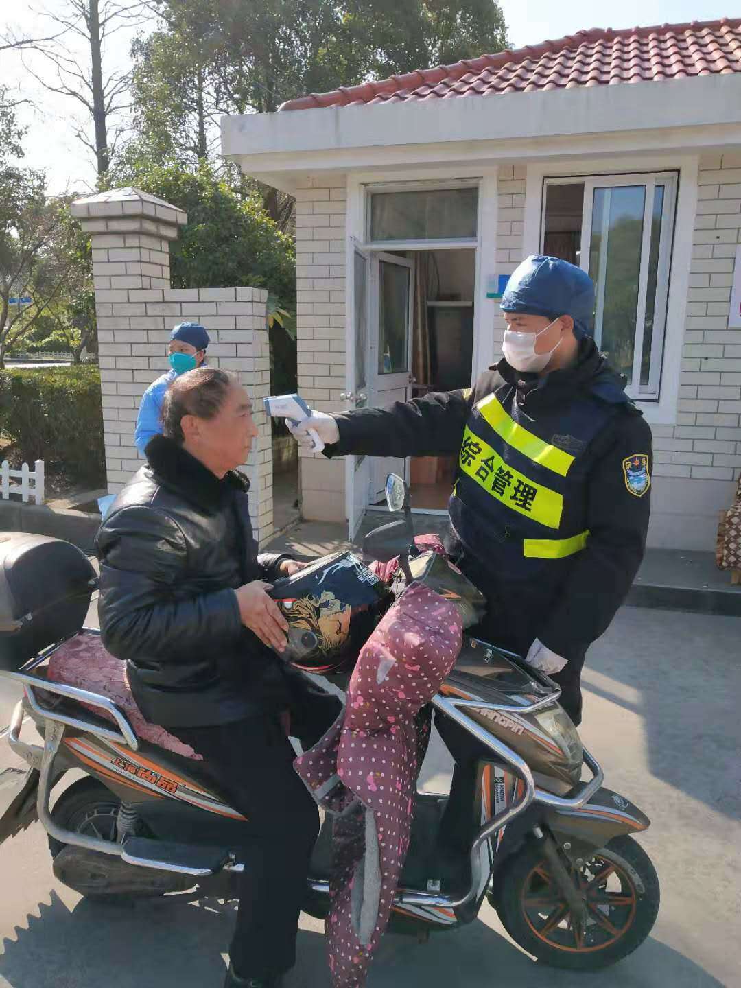 自1月28日以來(lái),宗保公司駐橫沙鄉市容項目的保安隊員們按照鄉政府新冠肺炎疫情防控工作領(lǐng)導小組的安排部署,與鄉社區衛生服務(wù)中心的醫務(wù)人員一起風(fēng)雨無(wú)阻地堅守在中心大門(mén)口,牢牢筑起第一道防線(xiàn)。隊員們按照要求,用自己的忠誠和擔當,以飽滿(mǎn)的工作狀態(tài),嚴格落實(shí)疫情防控各項工作措施,堅決做到逢車(chē)必檢、逐個(gè)測溫、逐個(gè)篩查,切實(shí)把人民群眾的身體健康和生命安全放在首位。