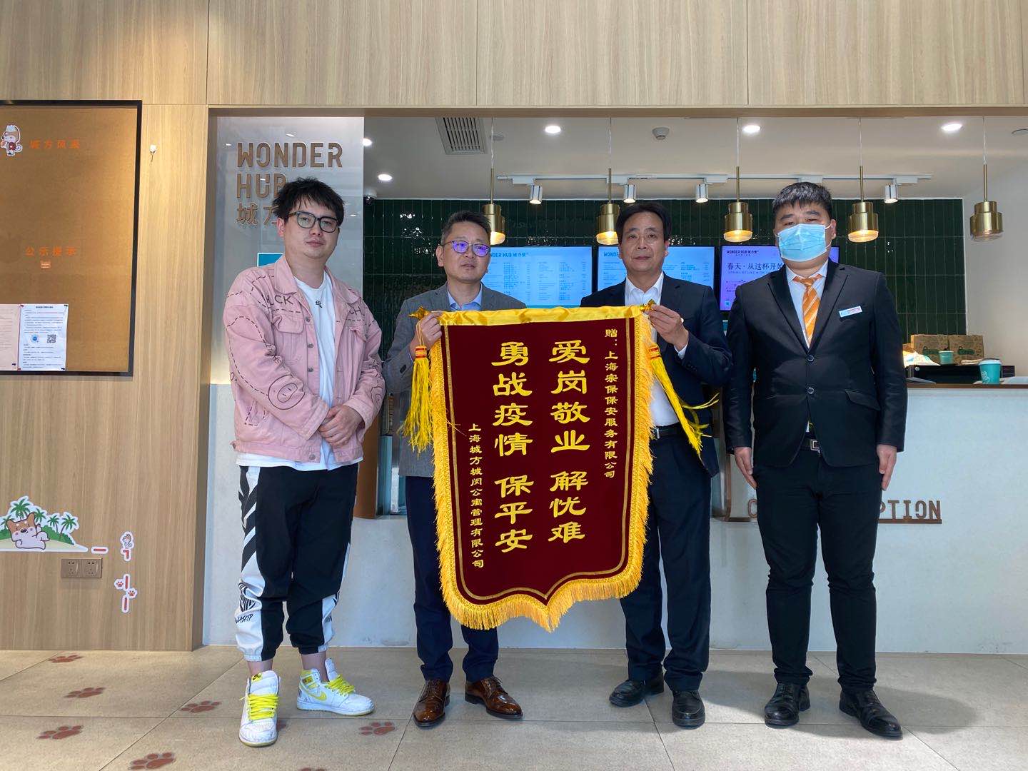 4月28日下午,上海城方城閔公寓管理有限公司總經(jīng)理金義星將一面寫(xiě)有“愛(ài)崗敬業(yè)解憂(yōu)難,勇戰疫情保平安”的錦旗送到上海宗保保安服務(wù)有限公司王書(shū)劍經(jīng)理的手中,這面錦旗是甲方對宗保公司疫情防控工作最好的認可和贊許。