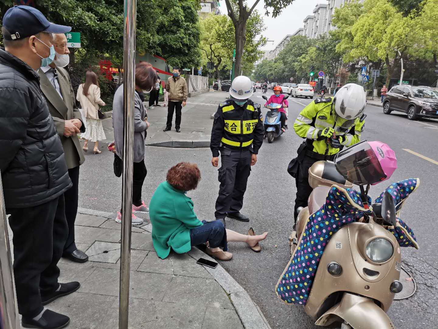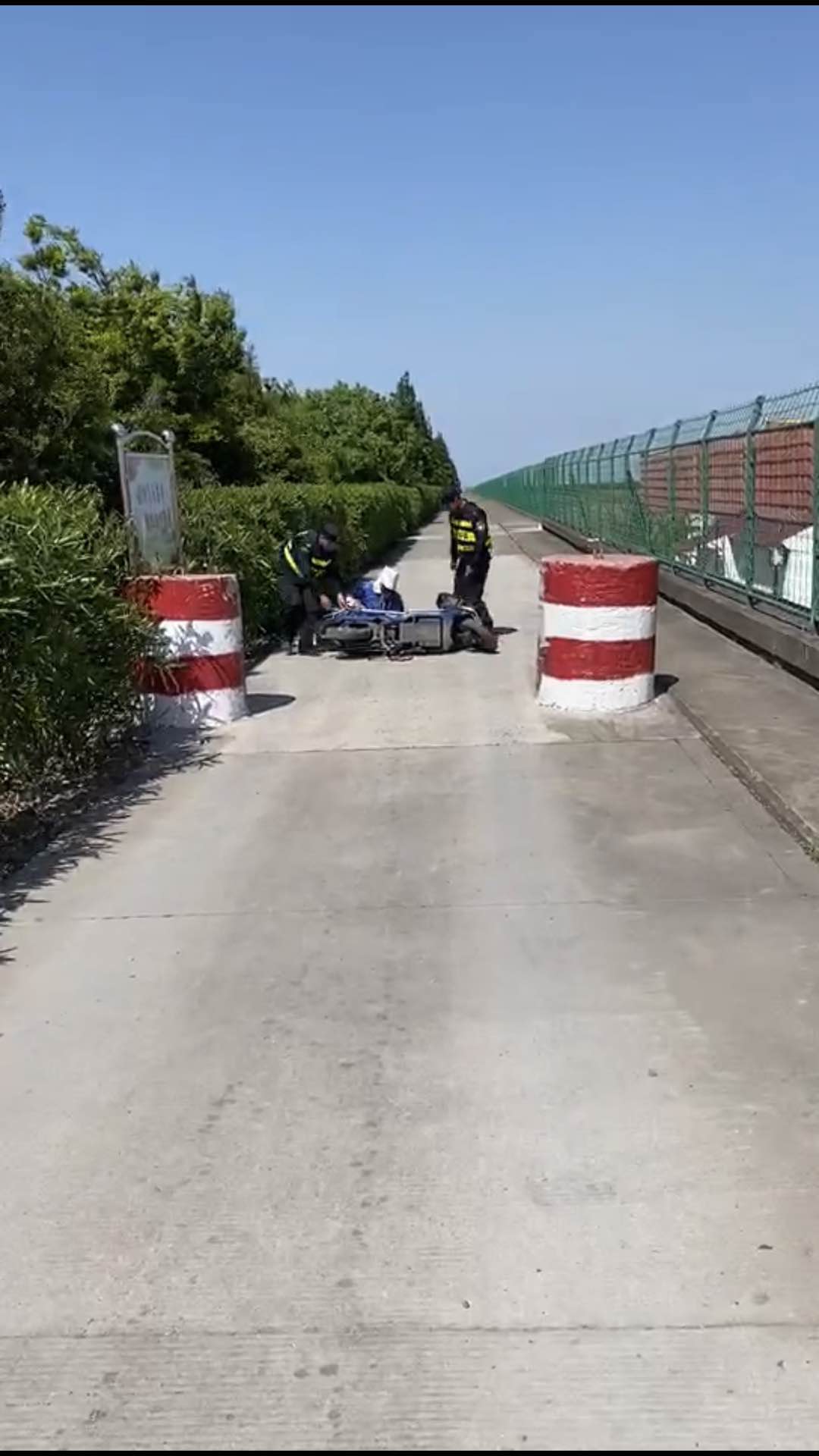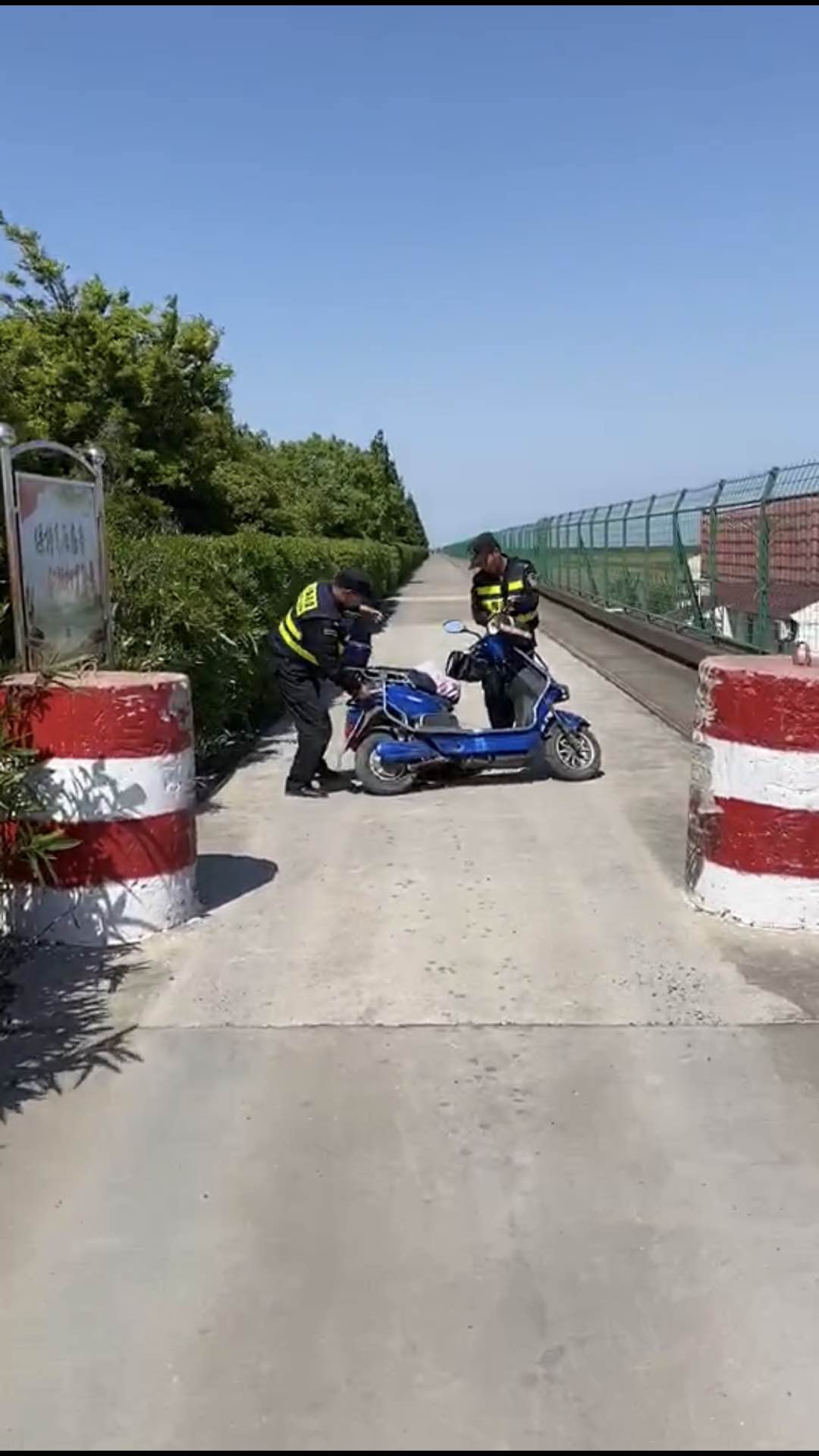 4月28日14:15,該項目隊員倪進(jìn)杉與楊奕林在地塊南門(mén)口執勤巡邏,看到一位老阿姨騎電瓶車(chē)不慎摔倒在地,立即上前查看情況?!耙凰は氯?,我整個(gè)人都懵掉了,根本沒(méi)有辦法起來(lái),這條路很少有人經(jīng)過(guò),多虧你們?!痹瓉?lái)阿姨著(zhù)急去田里干農活,結果連人帶車(chē)摔倒了。小倪和小楊將阿姨扶起,得知阿姨無(wú)大礙后,繼續投入到緊張的工作中。