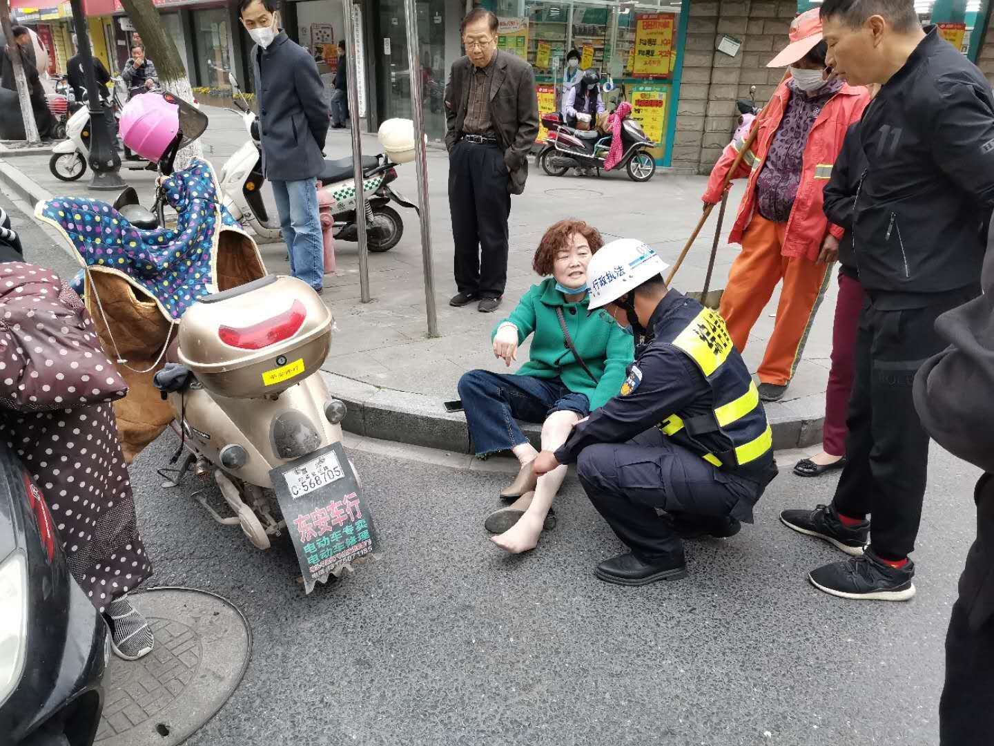 然而這一幕被巡邏至此的民泰公司駐臨平市容的保安員韓飛遇到。韓飛立即上前將阿姨扶到路邊坐下,發(fā)現阿姨的腿部關(guān)節受傷嚴重無(wú)法動(dòng)彈,而阿姨已經(jīng)被嚇得一臉驚慌失措。韓飛一邊安撫阿姨,一邊打了110報警電話(huà),然后和阿姨家人取得聯(lián)系。