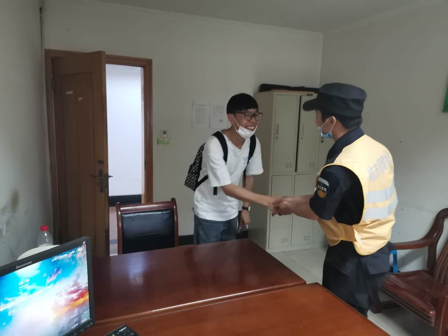 當天16:30,浙江民泰保安公司駐臨平市容項目隊員陳亮賢,巡邏至東湖中路時(shí),撿到一個(gè)裝有身份證、市民卡、會(huì )員卡等各類(lèi)證卡的錢(qián)夾。小陳通過(guò)市民卡上的信息聯(lián)系到失主,并在原地等候。十五分鐘過(guò)后,一名年輕男子急急忙忙趕過(guò)來(lái),聲稱(chēng)自己不小心遺失了錢(qián)夾。經(jīng)過(guò)核實(shí)信息確定身份后,小陳將錢(qián)夾物歸原主。