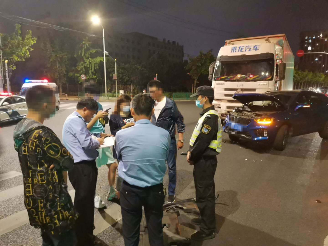 5月20日20:40,浦東新區金橋鎮巨峰路金京路交叉口發(fā)生一起大貨車(chē)與小汽車(chē)相撞的交通事故。宗保公司駐金橋派出所輔警項目隊員范沖、黃祥宇剛好巡邏至此,目睹了事故的全過(guò)程。