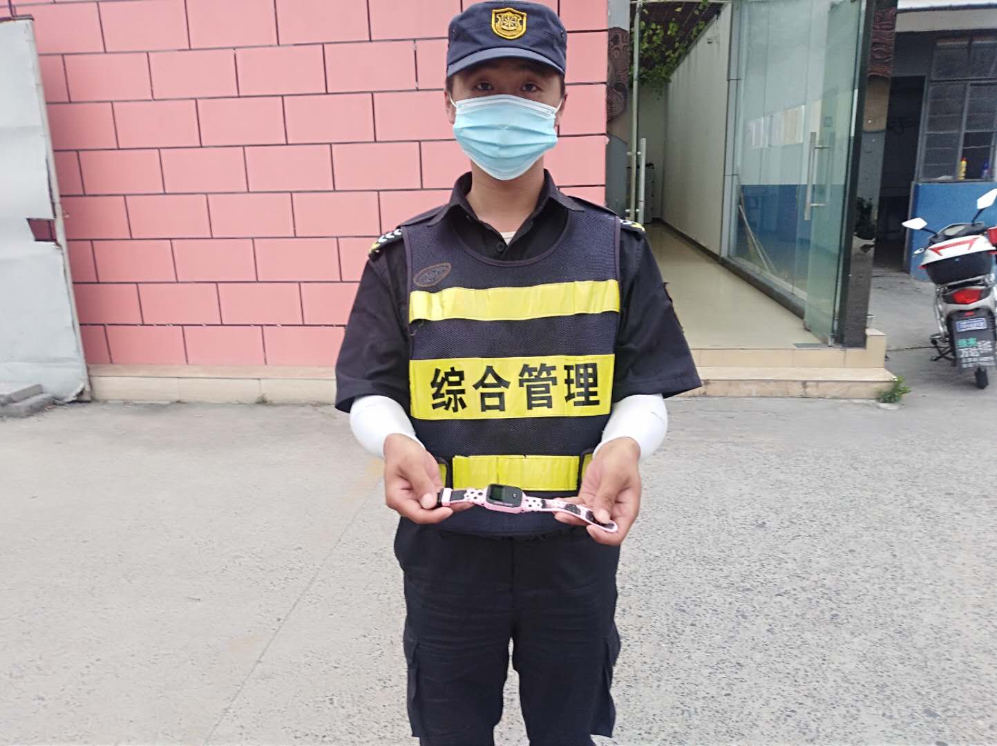 5月24日17點(diǎn),宗保公司駐三林市容項目隊員范金元巡邏至高青路地鐵站附近時(shí),發(fā)現一塊學(xué)生用智能手表,可能是附近小朋友放學(xué)路上不小心遺失的,肯定會(huì )打電話(huà)過(guò)來(lái)。因手表有定位功能,小范不想失主跑太多路,就在原地等待。