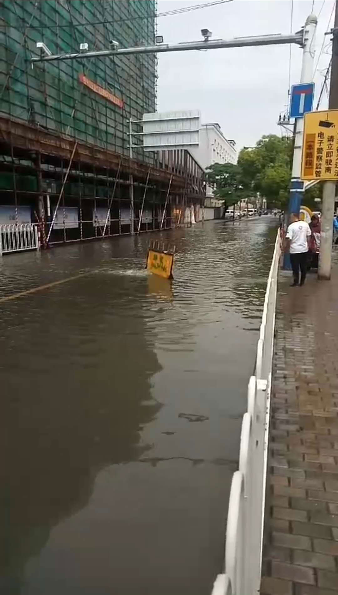 6月5日,閔行區虹梅南路莘朱路路口,由于突降暴雨,下水道堵塞路面積水,嚴重影響道路交通安全。