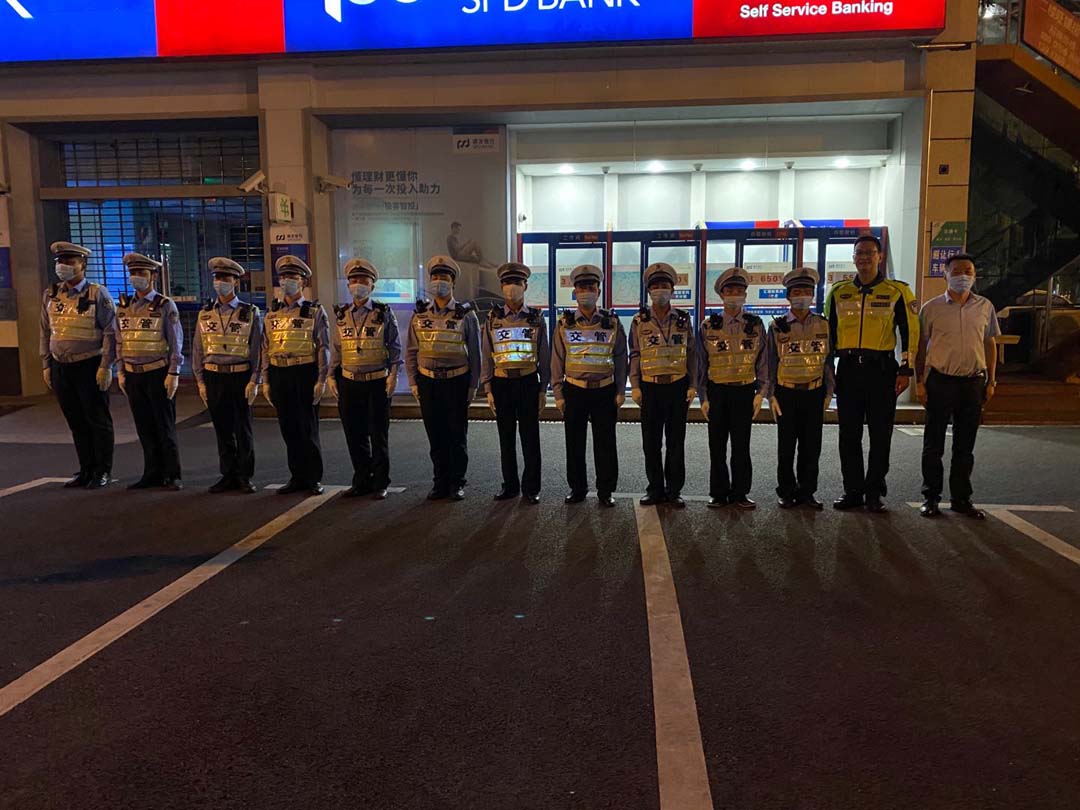 6月7日21:00,虹橋龍柏派出所副所長(cháng)王磊、警長(cháng)蔣勇一行,來(lái)到閔行區吳中路蓮花路交叉路口,慰問(wèn)工作中表現優(yōu)秀的宗保公司駐閔行區域虹橋交通輔警隊員王占鋒。