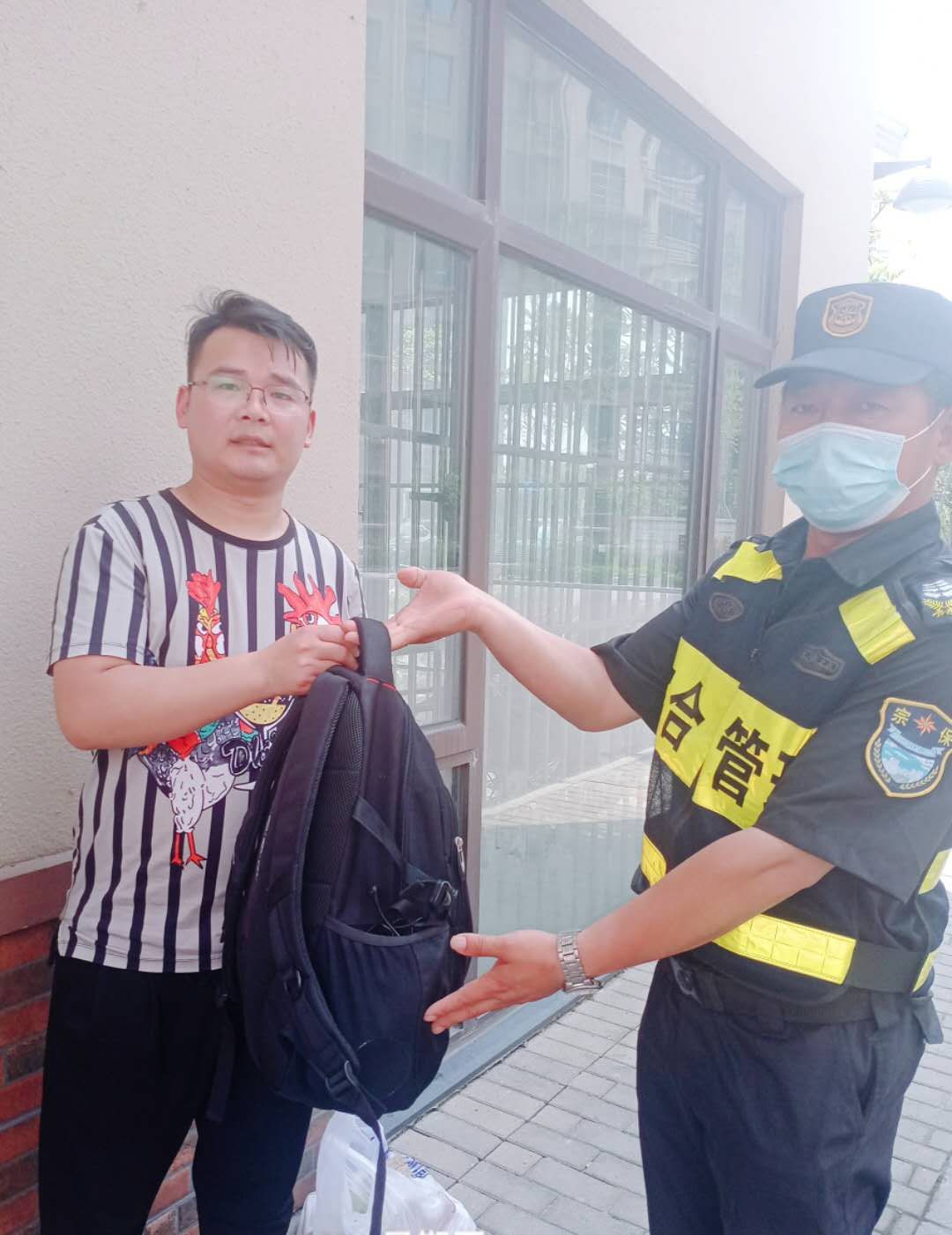 小孫在原地等了二十分鐘左右,無(wú)人認領(lǐng),便上報項目負責人。按照指示,先把背包放休息崗點(diǎn),等待失主認領(lǐng)。14:30,失主經(jīng)打聽(tīng),聯(lián)系到隊員孫俊山,原來(lái)失主出去旅游,上車(chē)匆忙把包忘了,經(jīng)確認失主身份信息和包內物品無(wú)誤后歸還給失主。