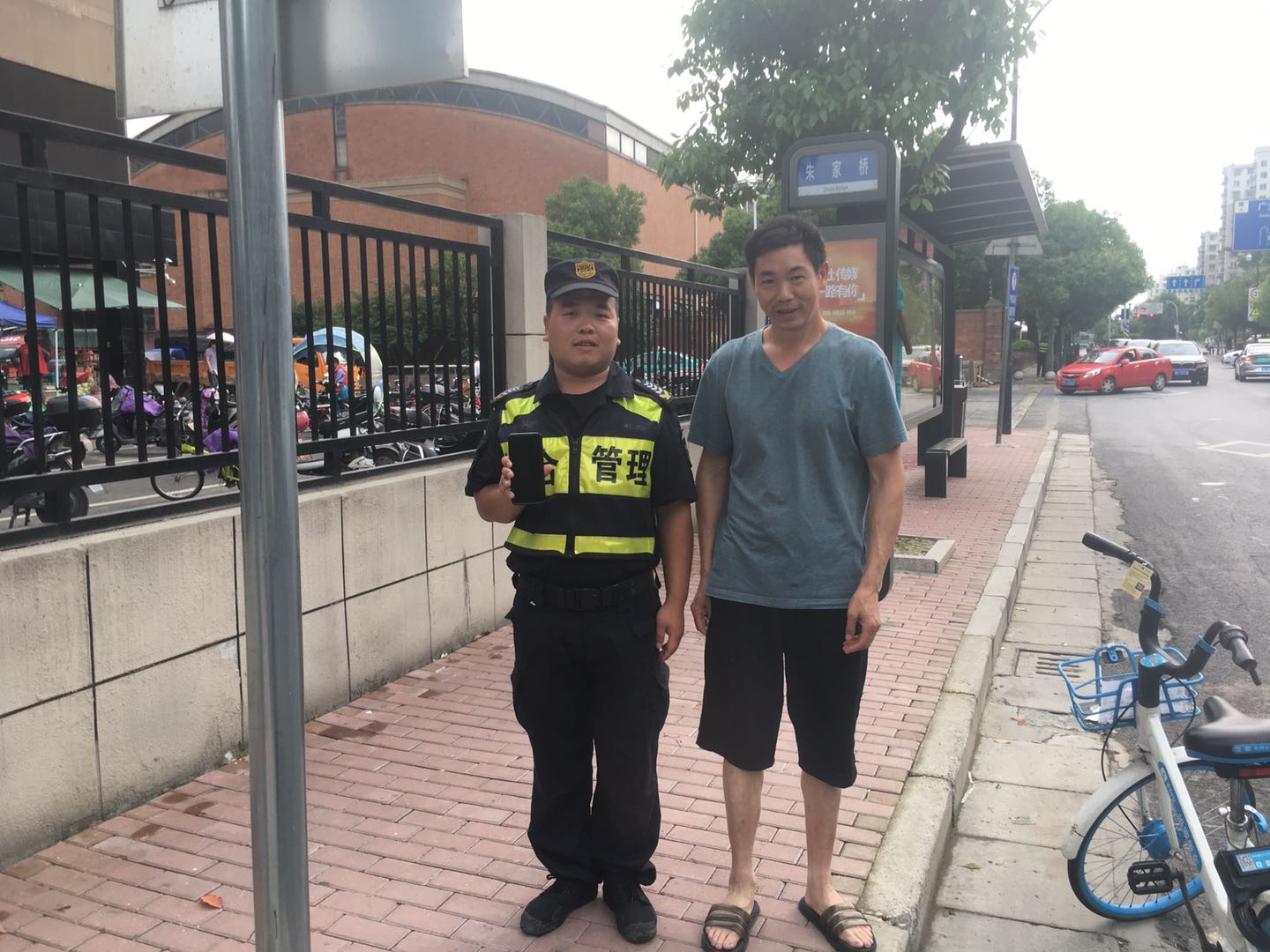 6月14號14:55,浙江民泰駐金家渡菜場(chǎng)綜合管理隊員郭勇強在朱家路巡邏時(shí)撿到一部手機,詢(xún)問(wèn)周邊商戶(hù)無(wú)果。小郭將此事匯報給帶班組長(cháng),得到指令原地等待失主。