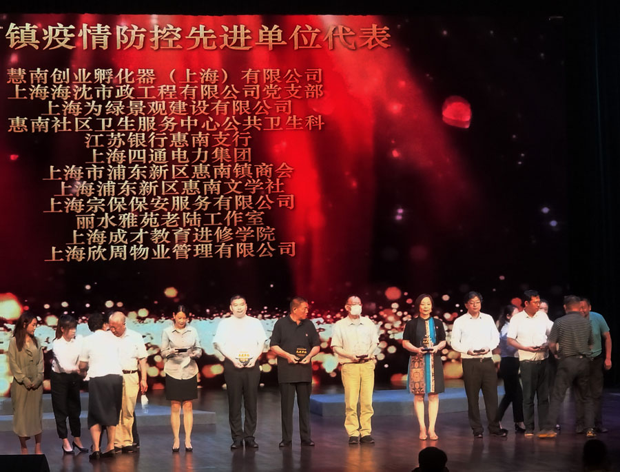 會(huì )上,惠南鎮黨委副書(shū)記馬妲球同志宣讀《關(guān)于表彰2019——2020年度惠南鎮基層黨組織、區域化黨建先進(jìn)單位、優(yōu)秀黨務(wù)工作者、優(yōu)秀共產(chǎn)黨員、優(yōu)秀工作者的決定》。上海宗保保安服務(wù)有限公司等12家單位被當選為惠南鎮疫情防控先進(jìn)單位,宗保公司副總經(jīng)理楊璞代表董事長(cháng)馮中保接受頒獎。