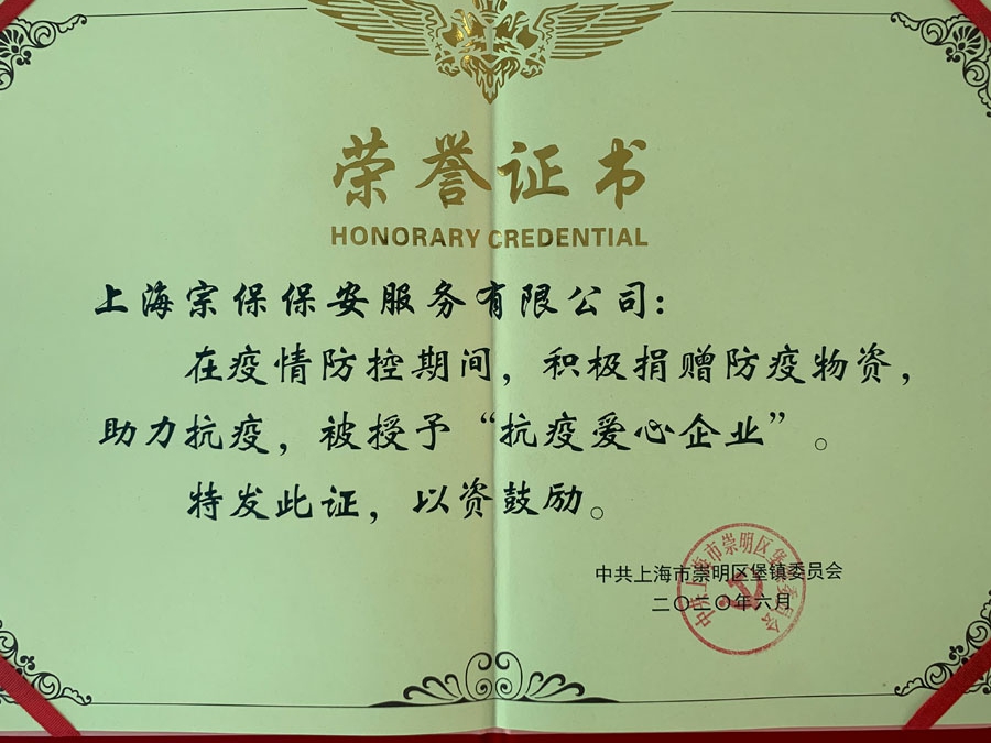 7月1日,崇明區堡鎮舉行紀念中國共產(chǎn)黨成立99周年大會(huì )。上海宗保保安服務(wù)有限公司當選為堡鎮“抗疫愛(ài)心企業(yè)”,崇明區域經(jīng)理馬應龍上臺領(lǐng)獎。